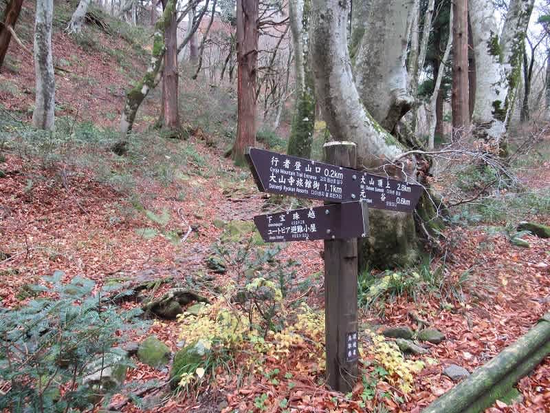 元谷行者コースへの分岐です。もう少し天気がよければここから元谷へ降りて 大神山神社へ