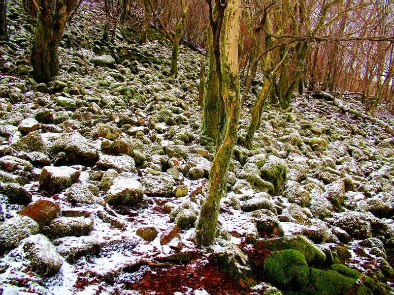 不思議な光景の場所に来ました。丸くゴロゴロした石が積み上がり 苔むしていて