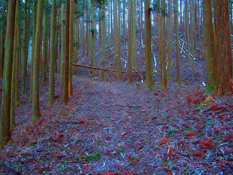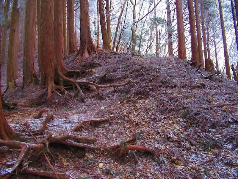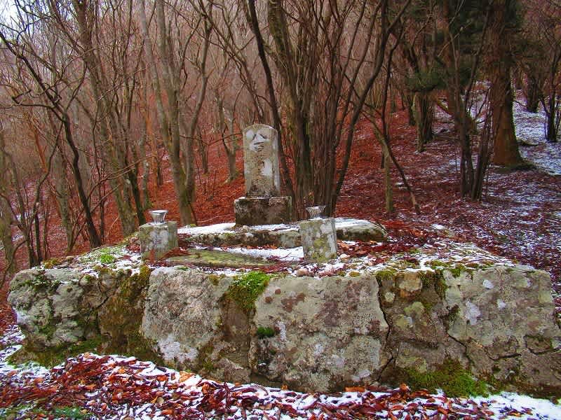 架空の大王神武が この岩に登り 国の評定をしたという 国見岩や 尾根道から小石を谷底へ投げて