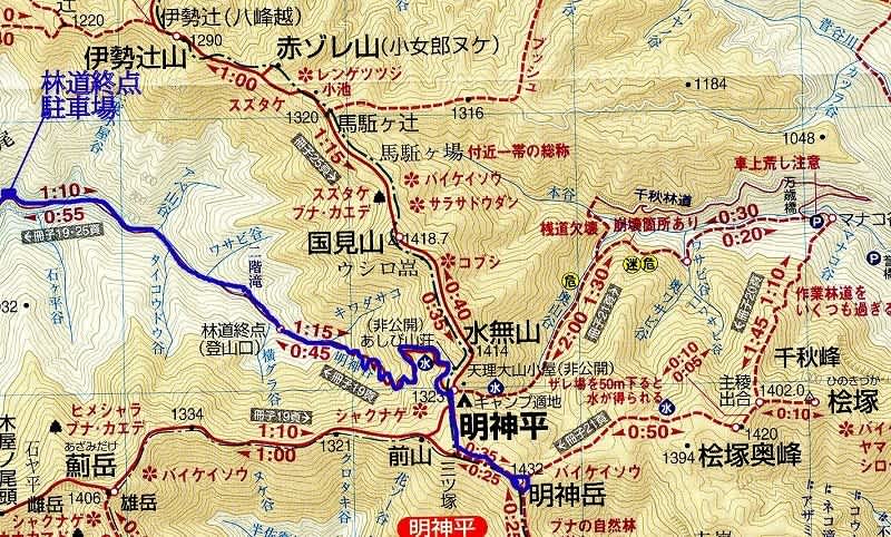 東吉野村大又林道の終点の登山者用無料駐車場に駐車して、明神岳まで往復します。