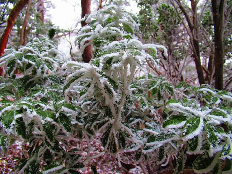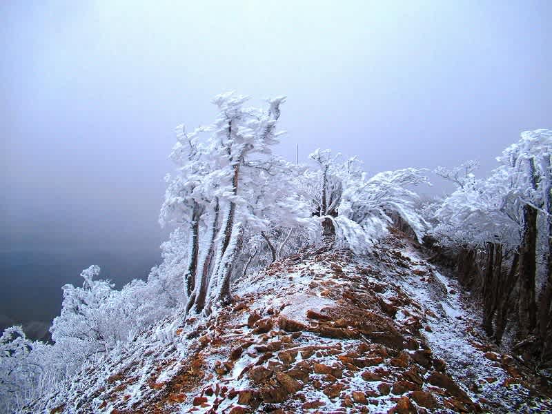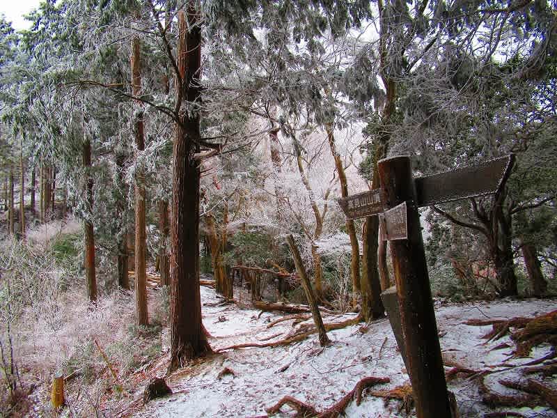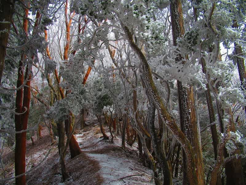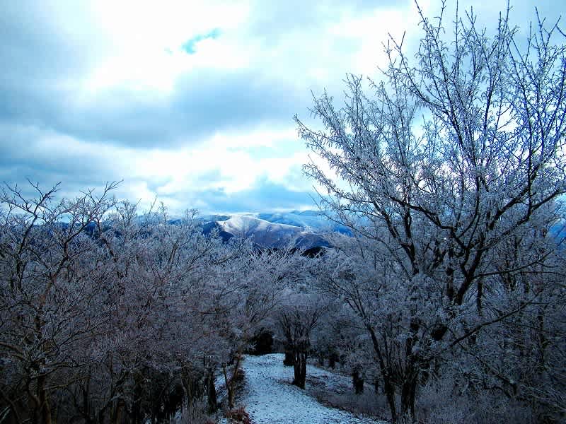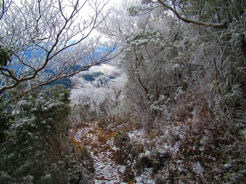 どんどん降りていくと 霧氷を見に来たご夫婦がいらっしゃって 三人でお話をしながら