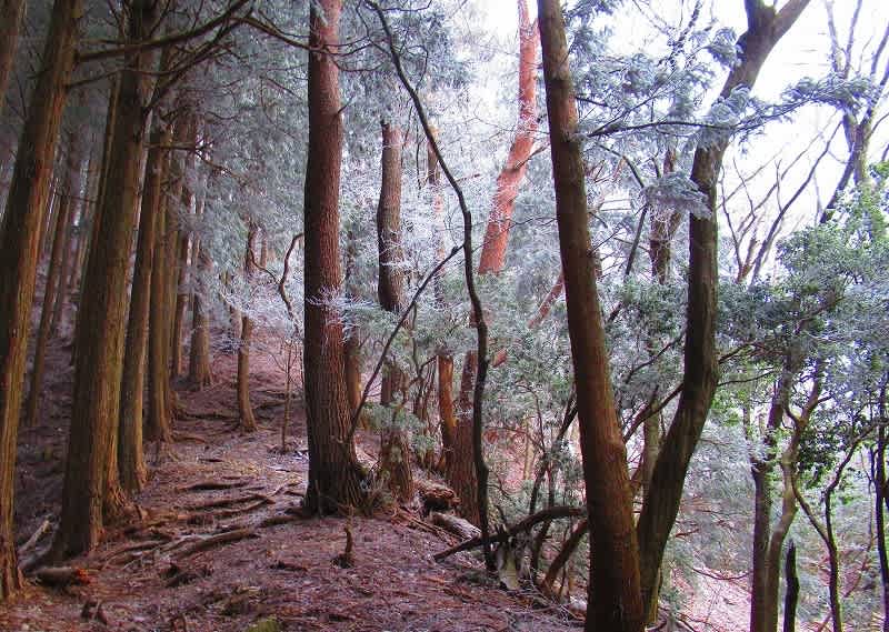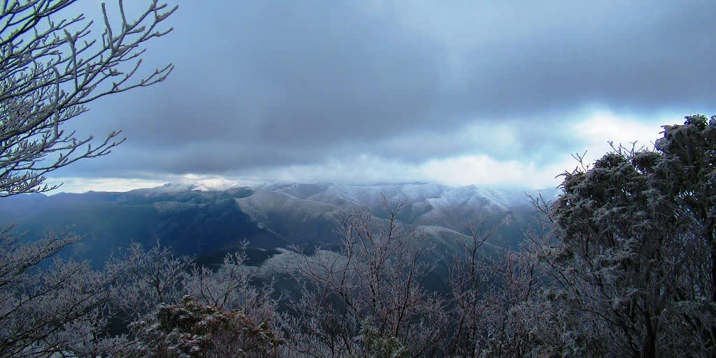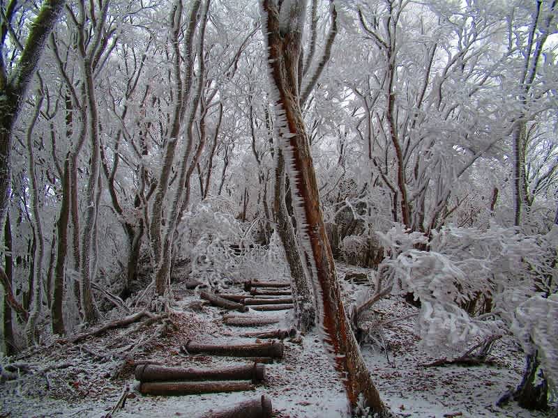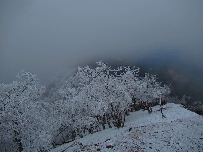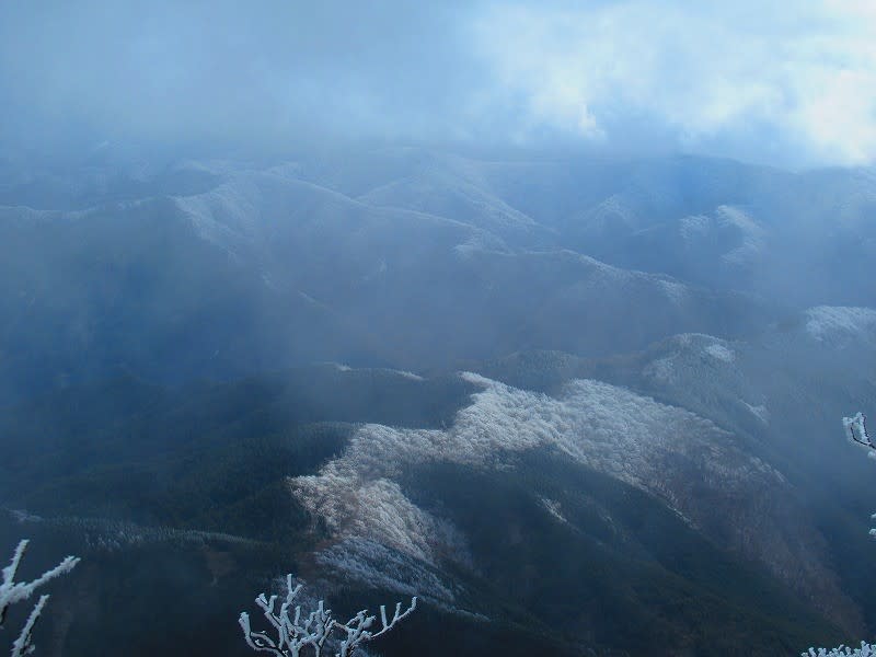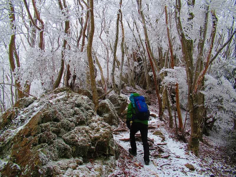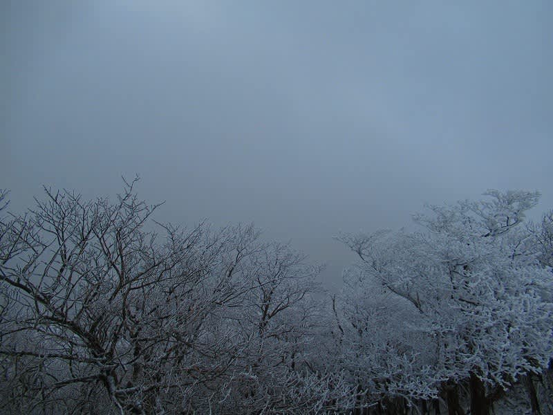 時々 木々の間から 遠くの山々が見えることはありますが ほとんどは霧氷の樹林帯を