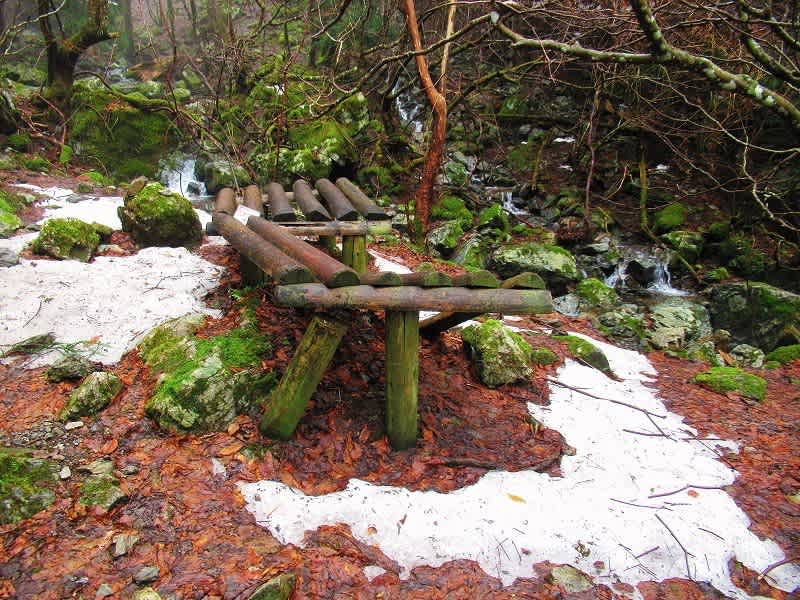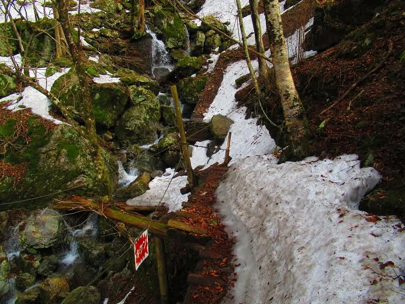 源流を渡りましたが 雪解け水で水量が多く靴をかなり濡らしてしまいました。