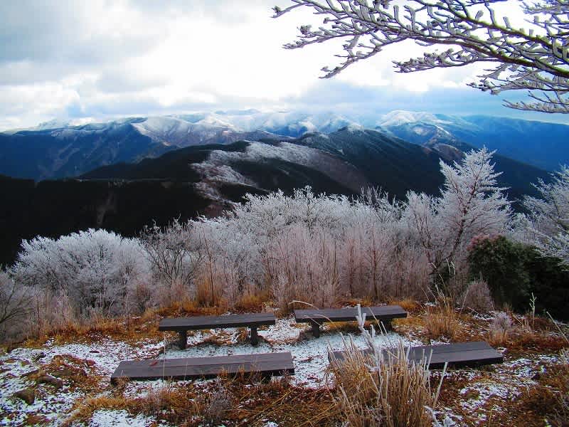 暫く霧氷と白い山々を眺めて 小休止しました。ここからは また森の中へ入りそうなので