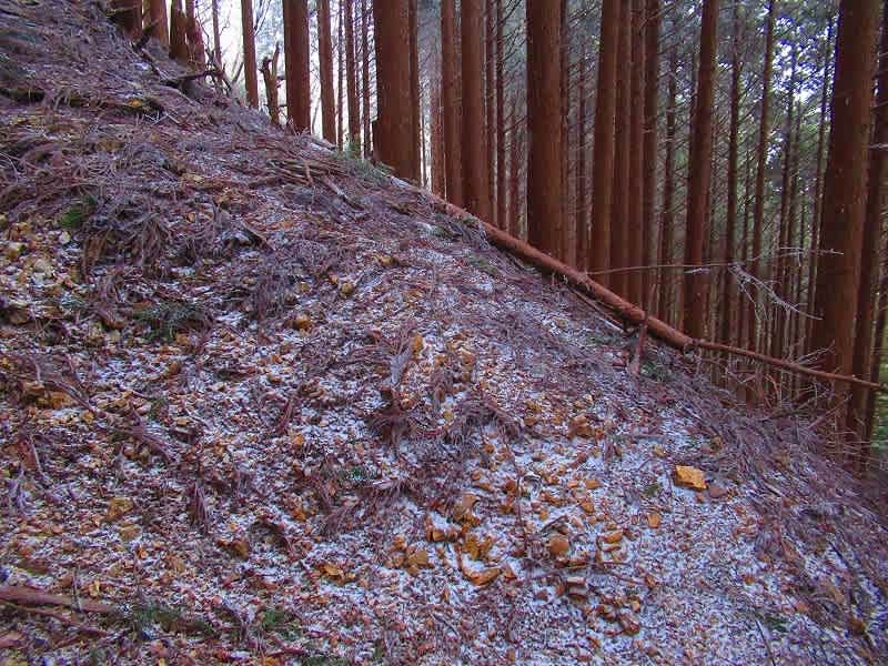 下山を始めてすぐに樹林帯に入り 周りが見えなくなりました。