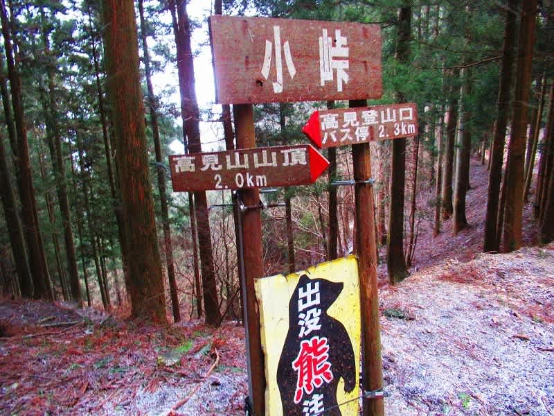 この林道を歩いて 小峠まで戻る予定でした。林道はところどころアイスバーンになっていましたが