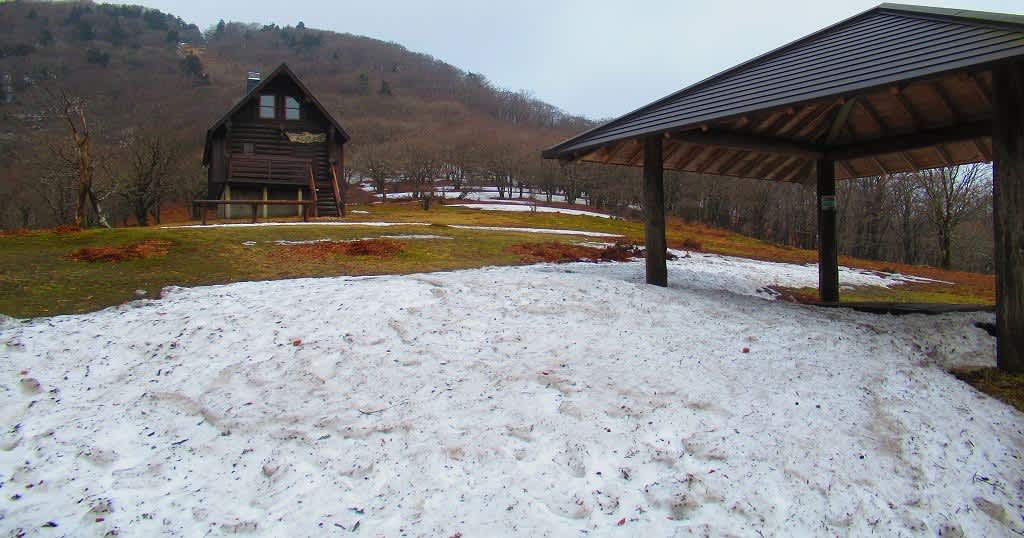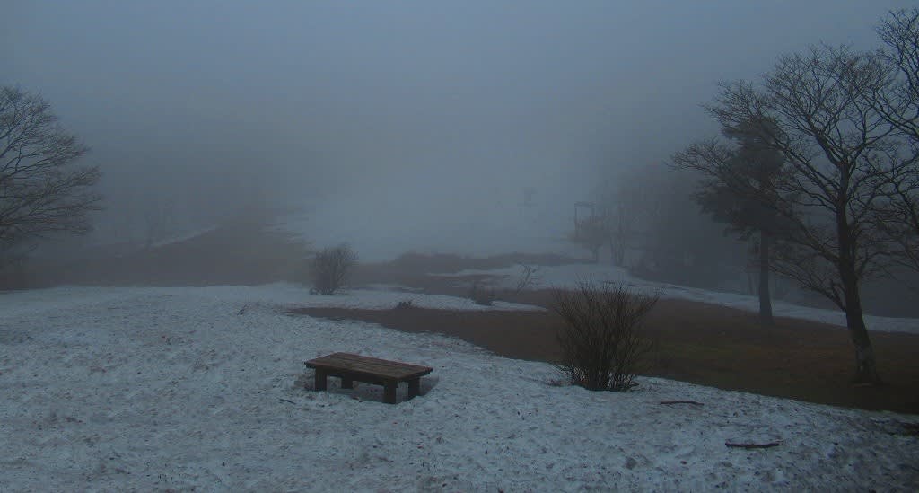山頂の吹雪と霧氷の世界が嘘のようでした。ここが 標高500m、山頂が標高1200mなので
