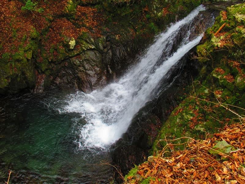 明神の滝を見ながら登ります。以前はここは こんなに崩れていなかったけどなあ。
