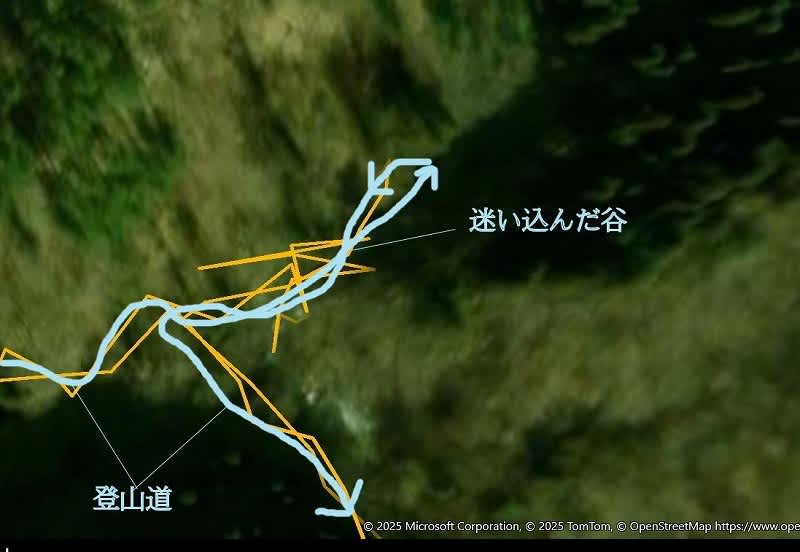 登りよりも下りが危険です。ゆっくり谷を下りれば、いつかは登ってきた道に出れると思い