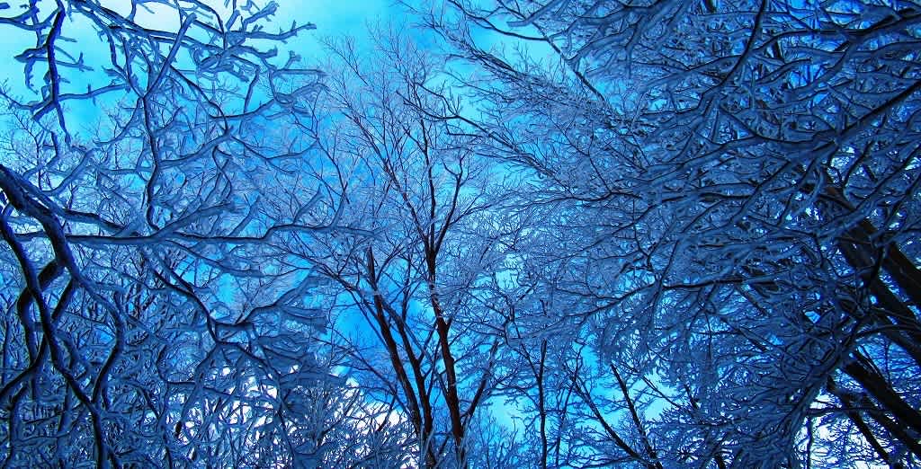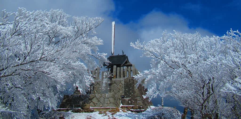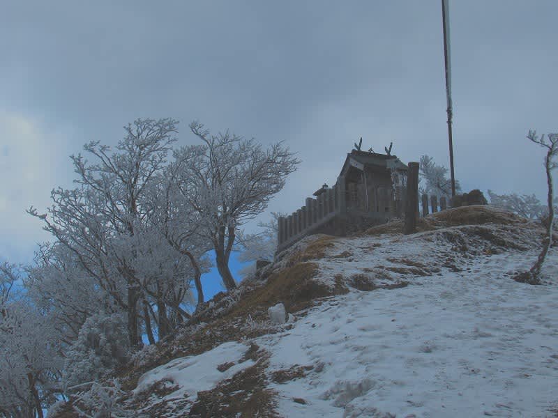 空の様子がよく分かりませんが、雪が止んだようです。青空に霧氷が映えてとてもきれいです。