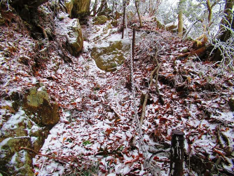 この尾根も氷でツルツルです。アイゼンを付けたままでよかった。