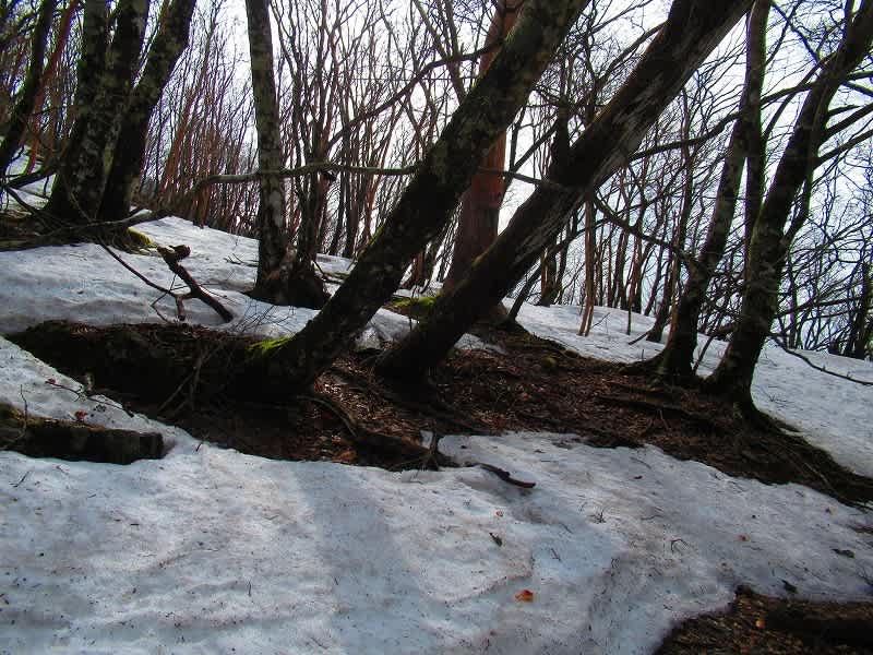 雪が半分腐っているので この辺りはズボズボ足がめり込みます。