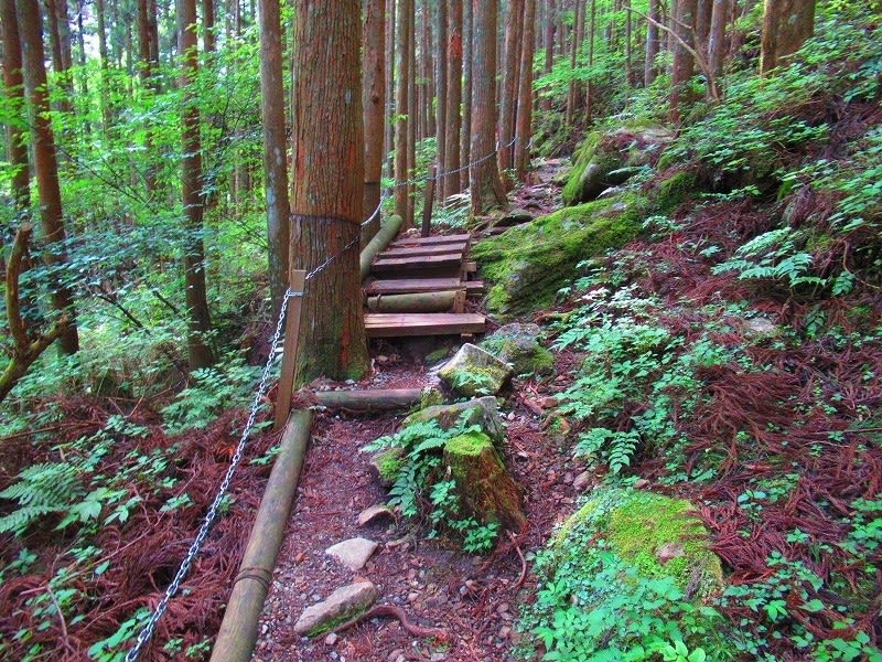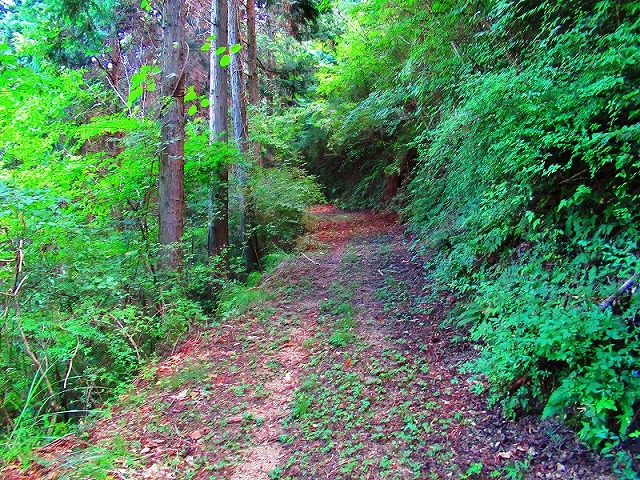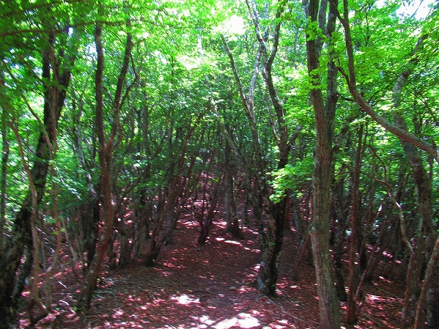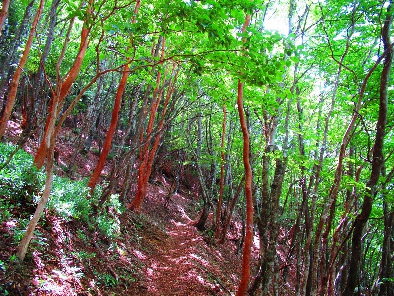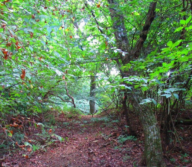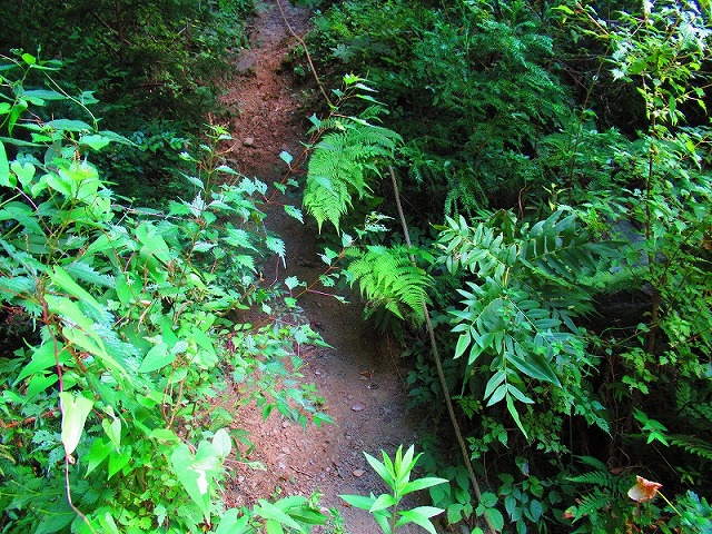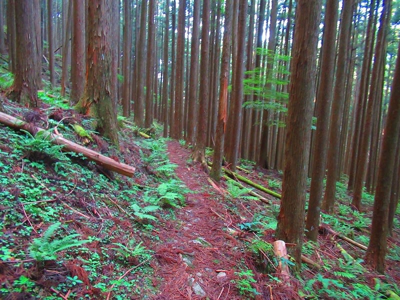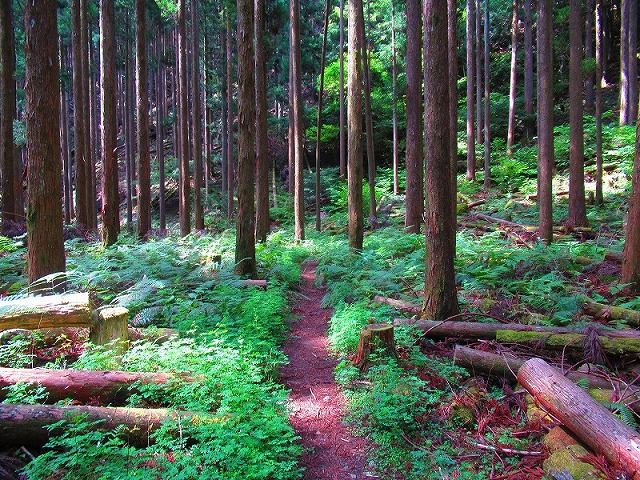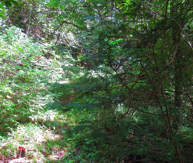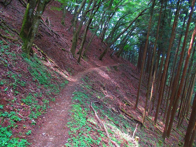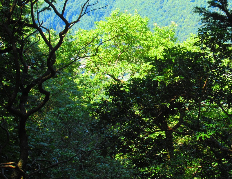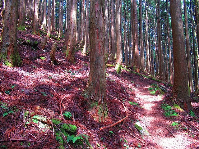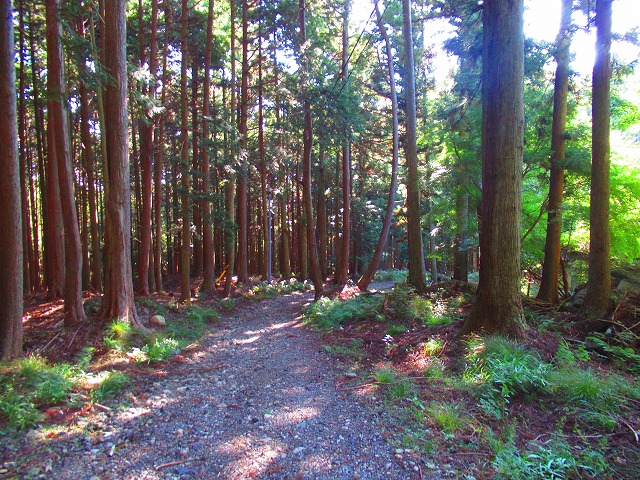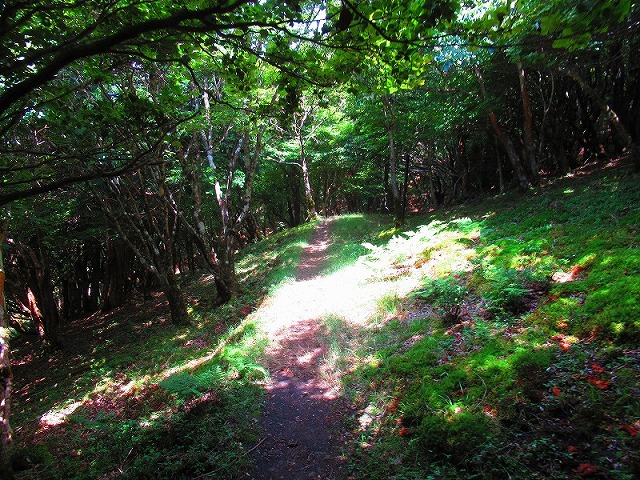 森に入りました。やれやれ一安心です。これで危険な道は無くなり、あとは普通の山道を降りるだけです。