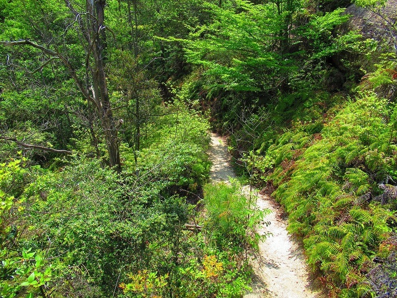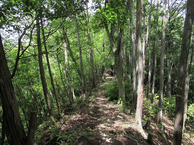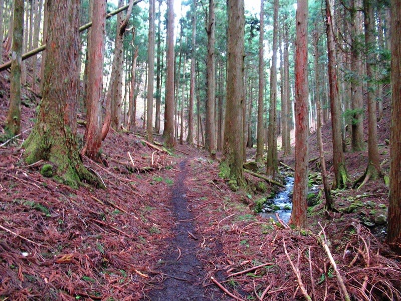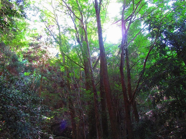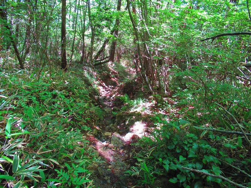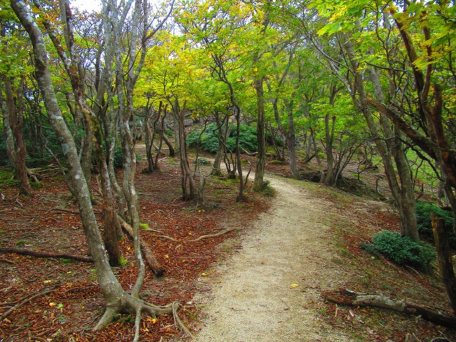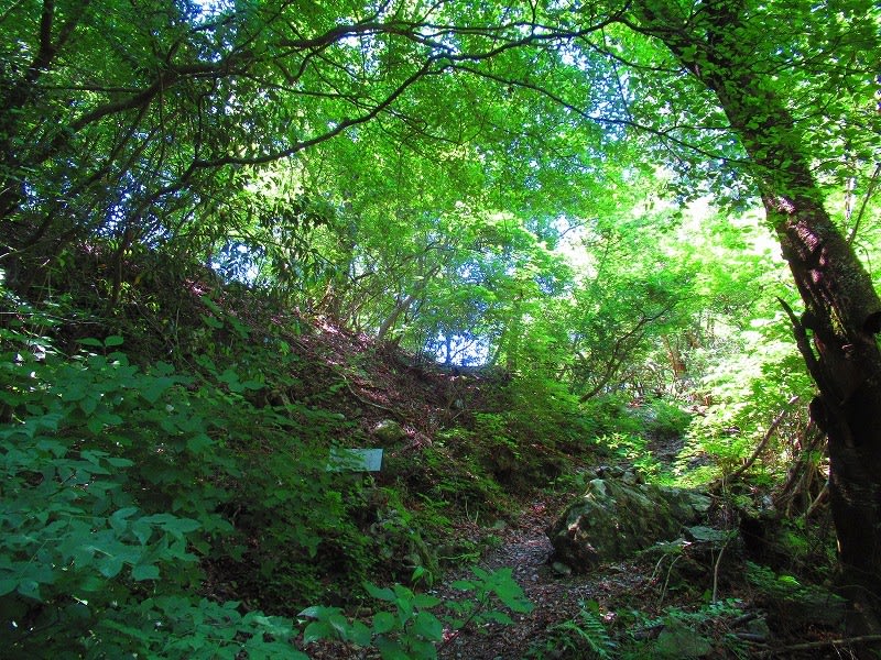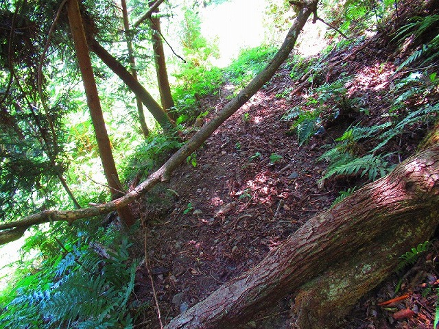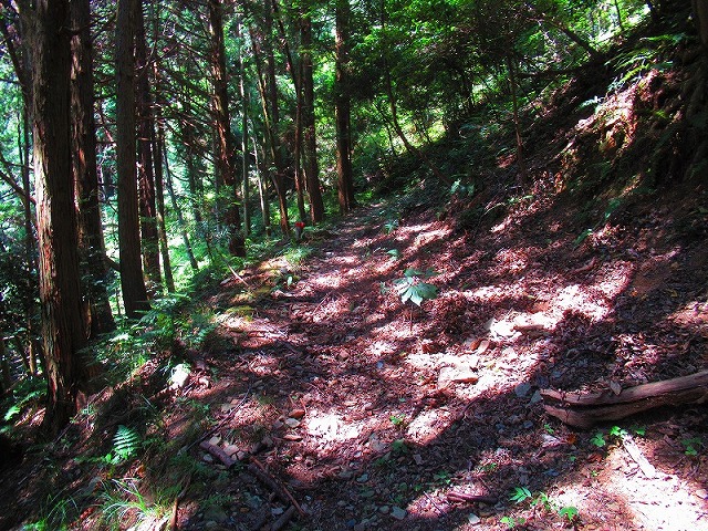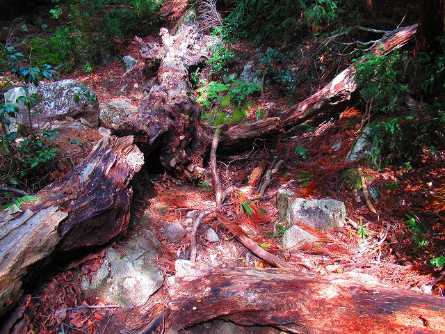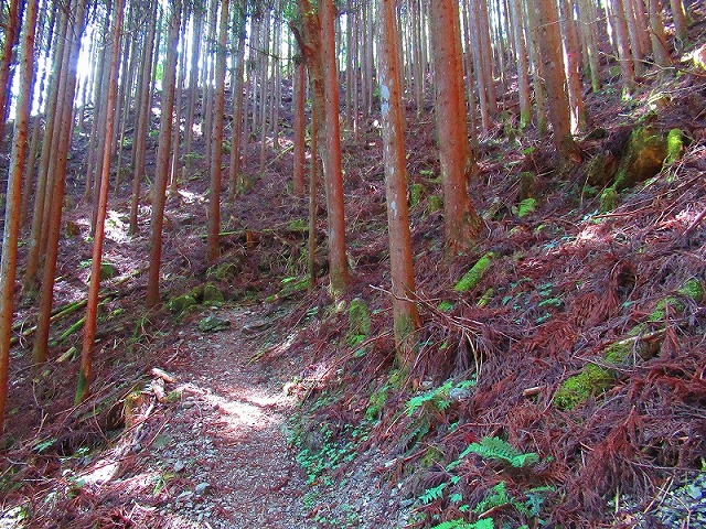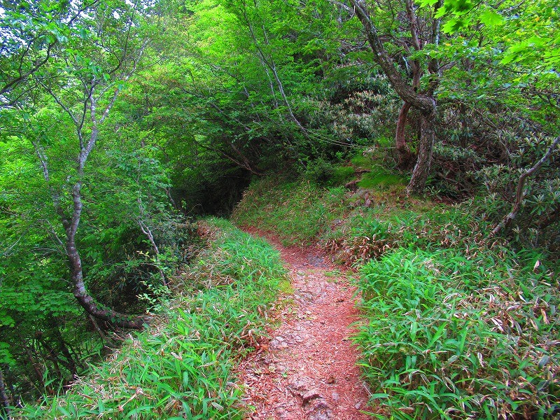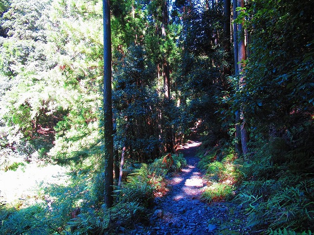 森に入りました。やれやれ一安心です。これで危険な道は無くなり、あとは普通の山道を降りるだけです。