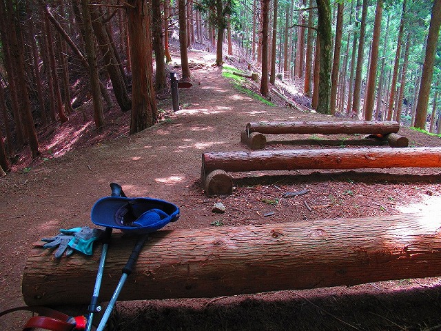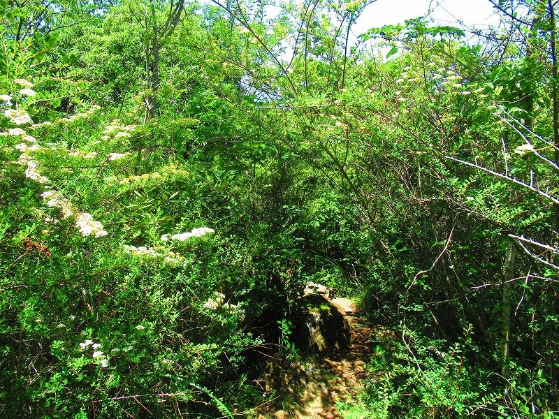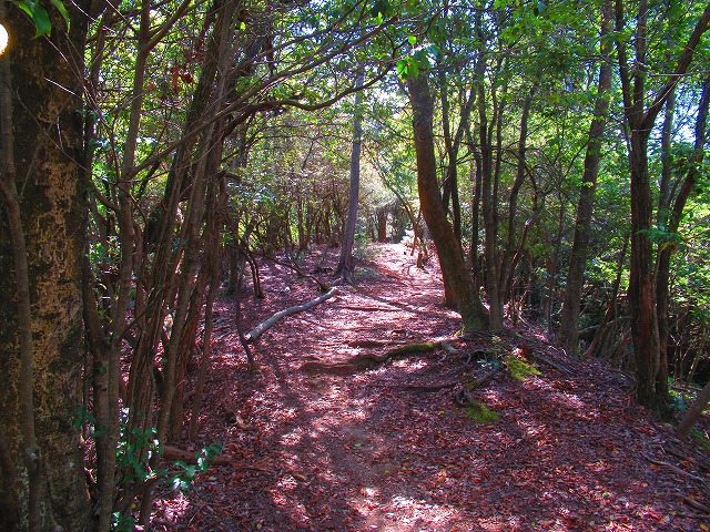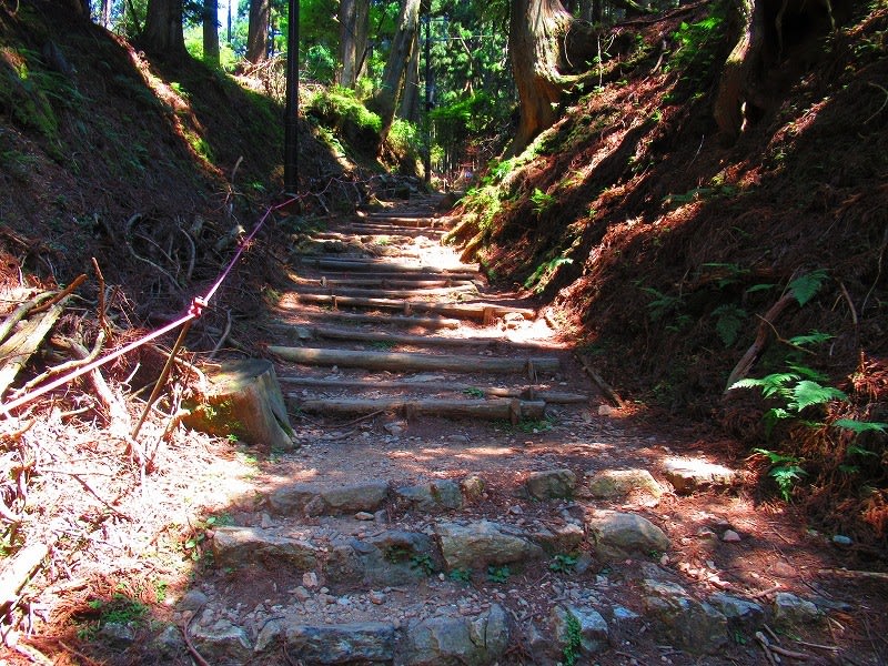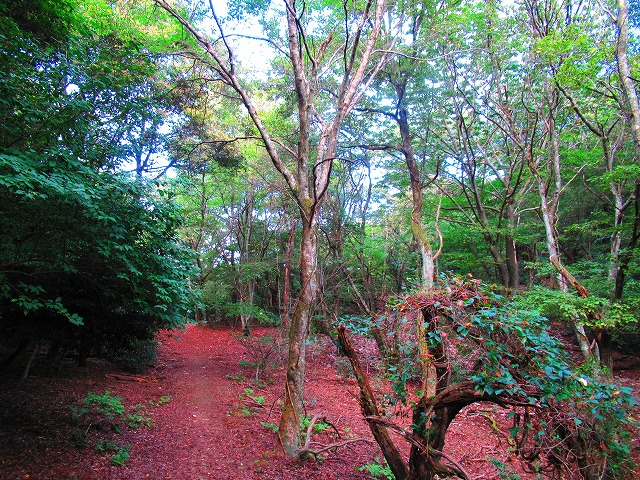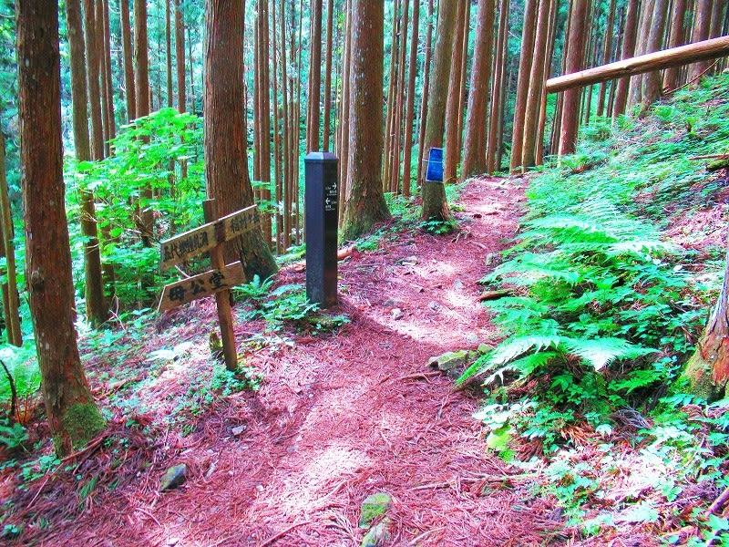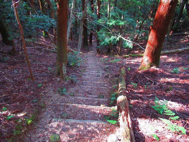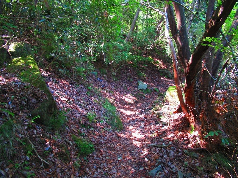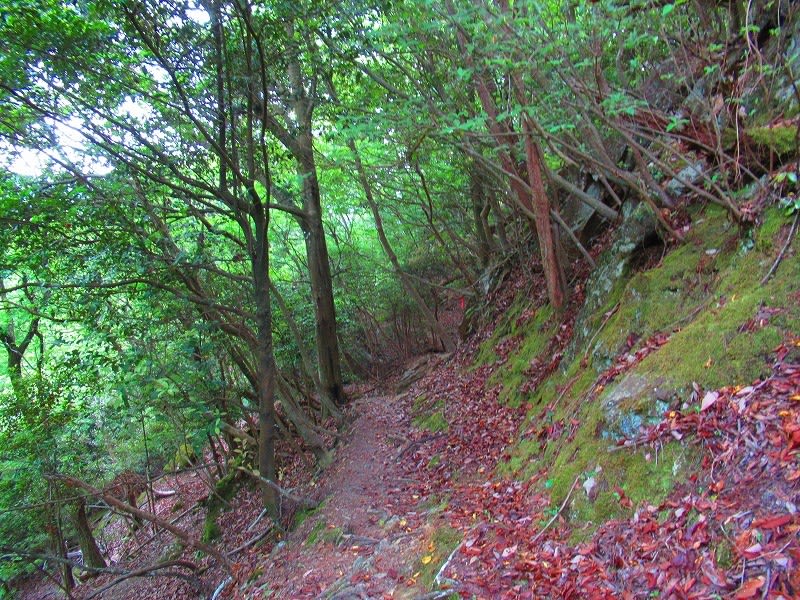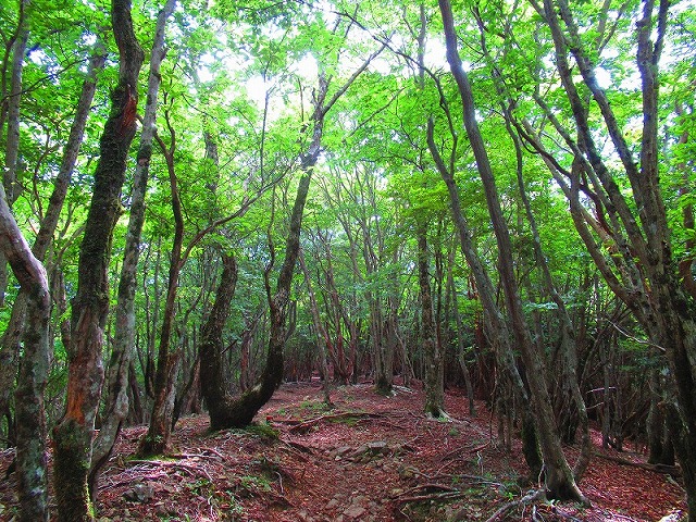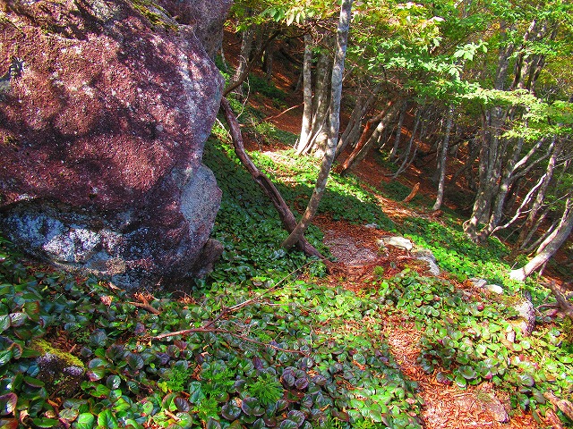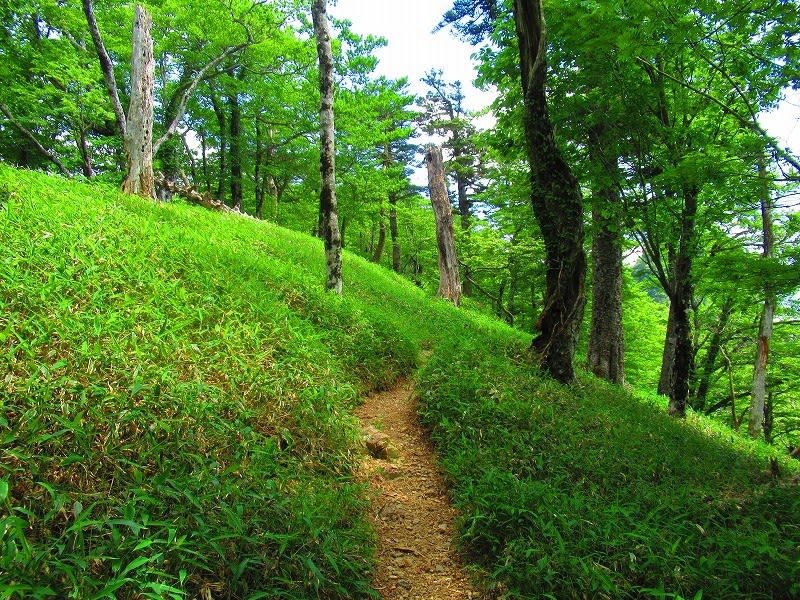 森に入りました。やれやれ一安心です。これで危険な道は無くなり、あとは普通の山道を降りるだけです。