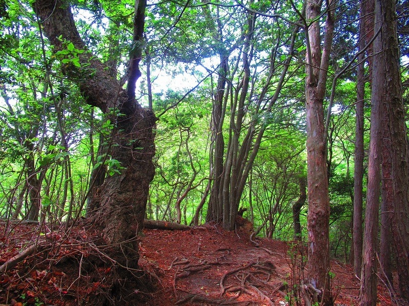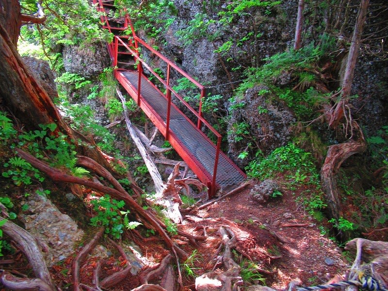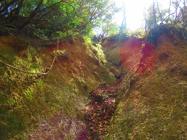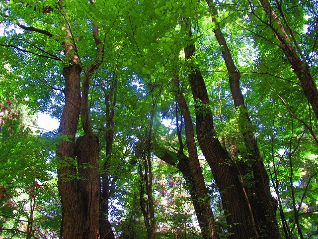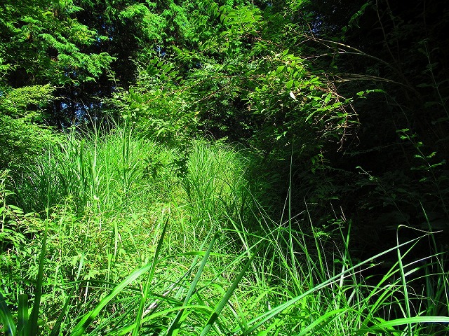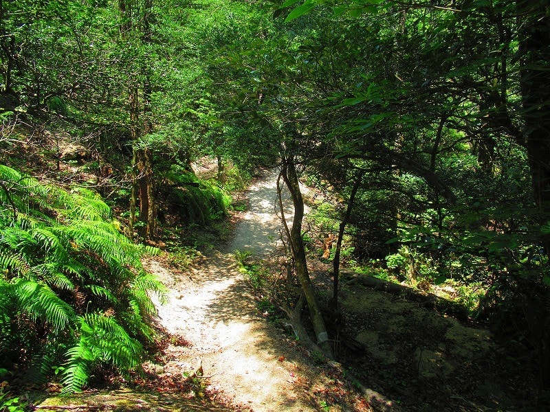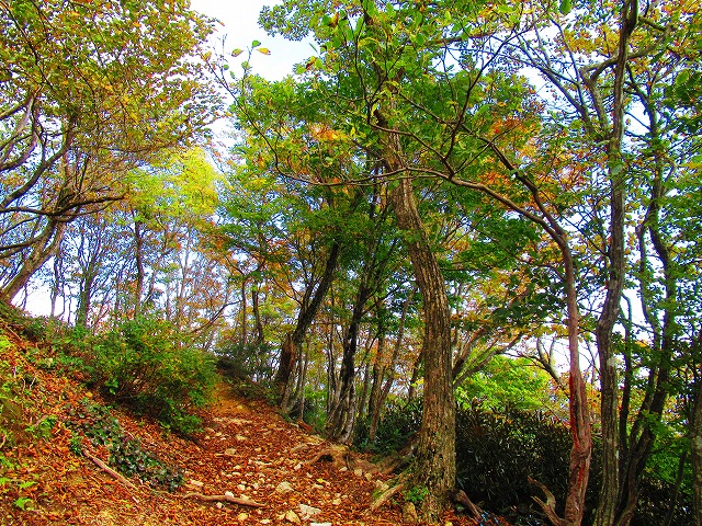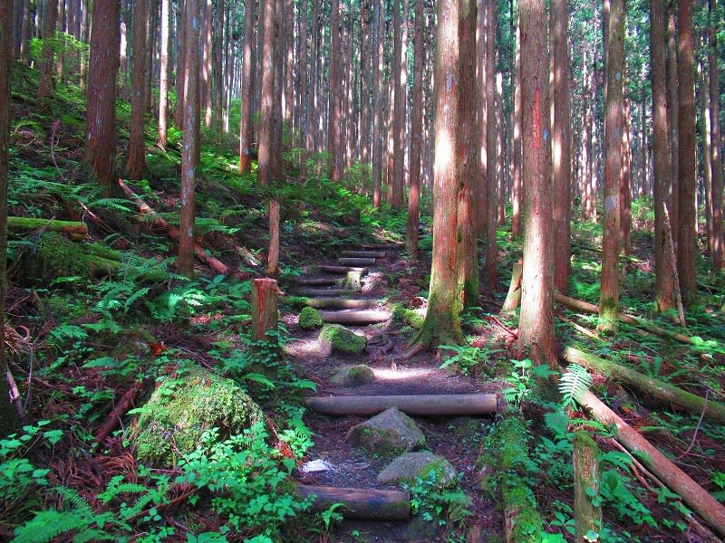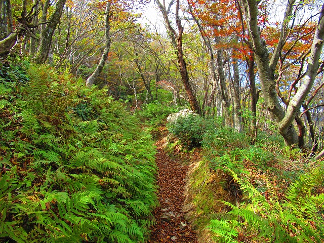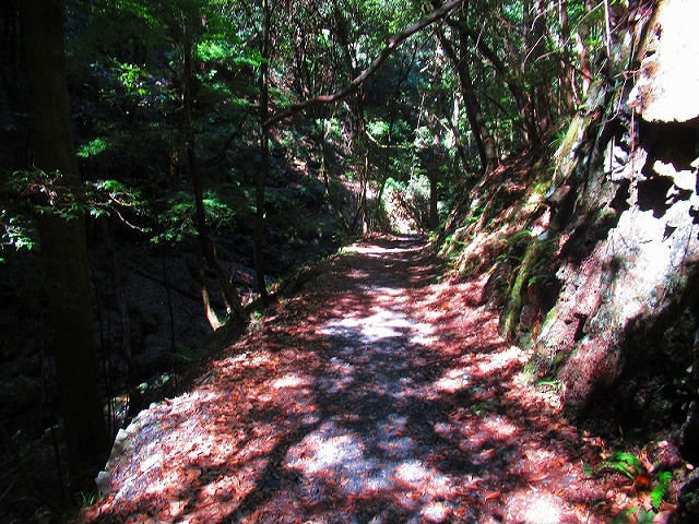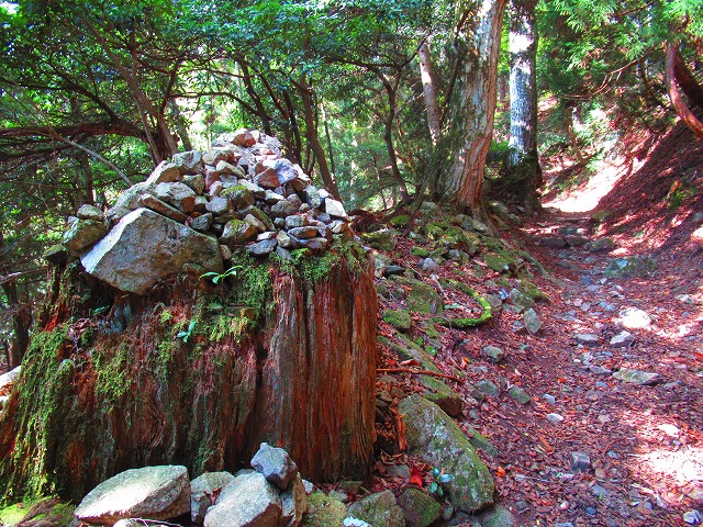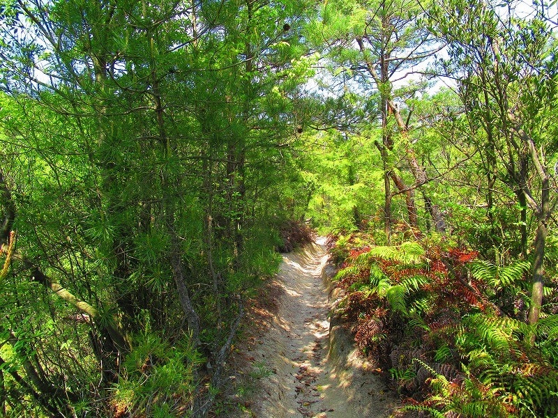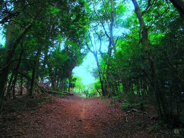 森に入りました。やれやれ一安心です。これで危険な道は無くなり、あとは普通の山道を降りるだけです。