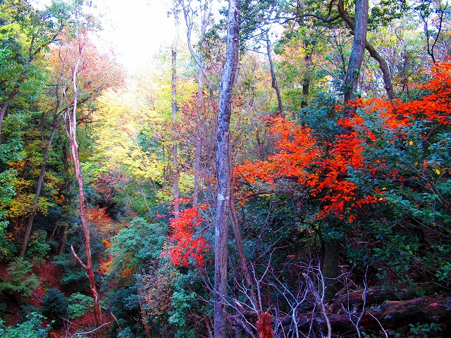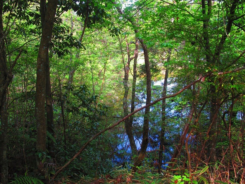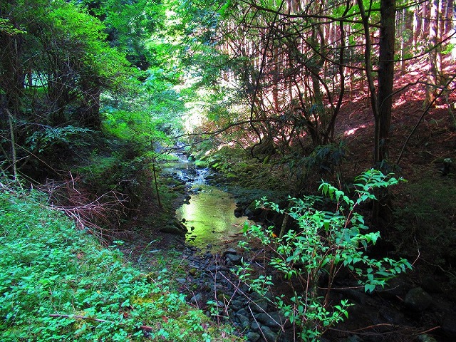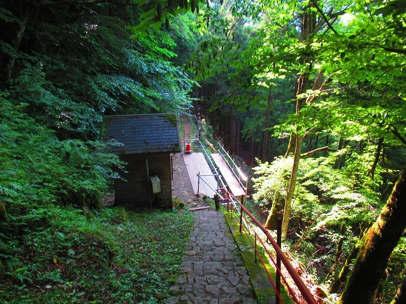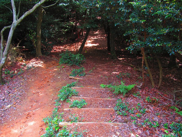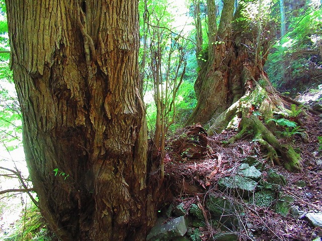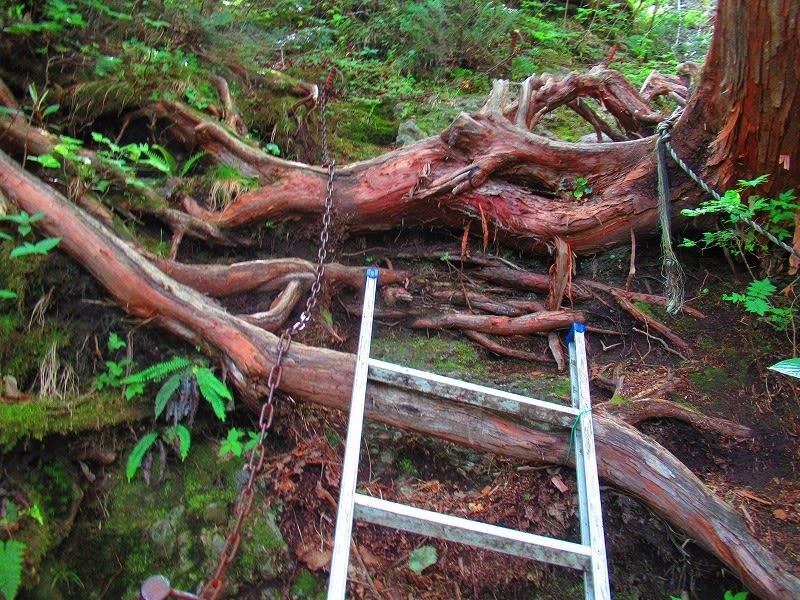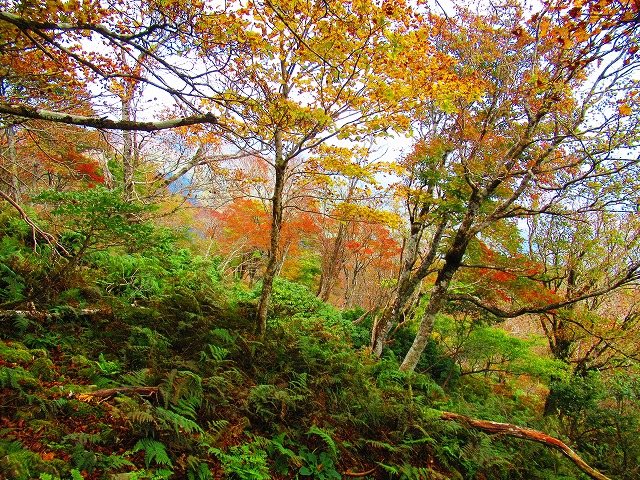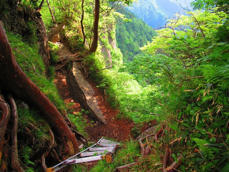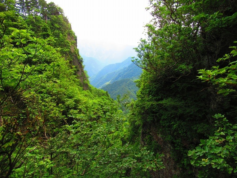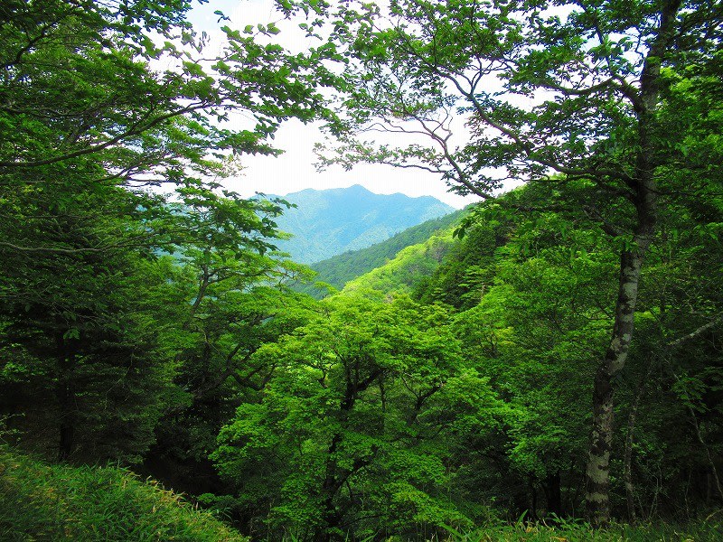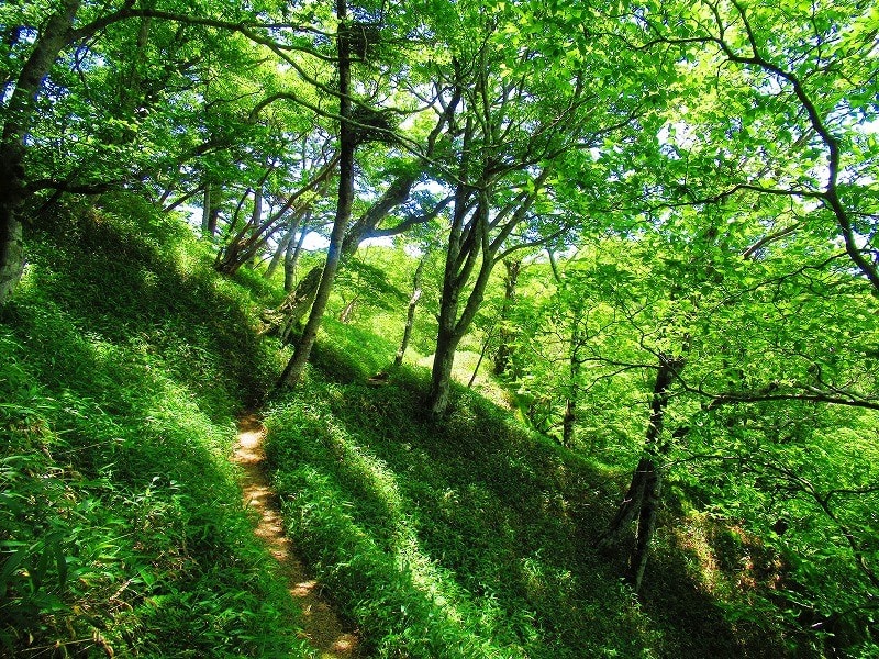 森に入りました。やれやれ一安心です。これで危険な道は無くなり、あとは普通の山道を降りるだけです。