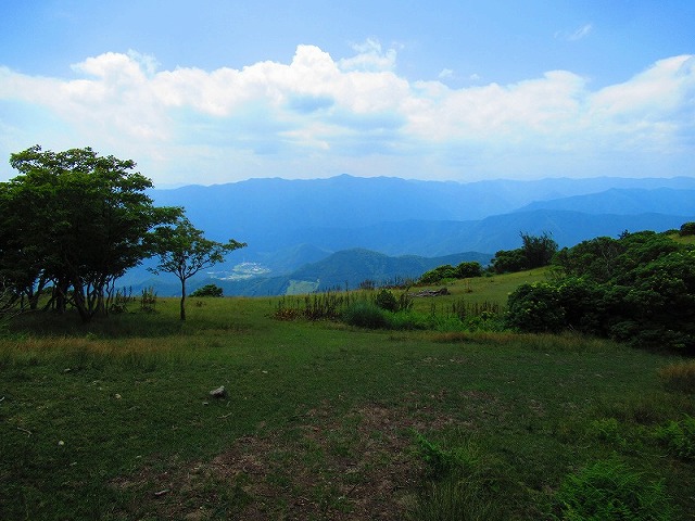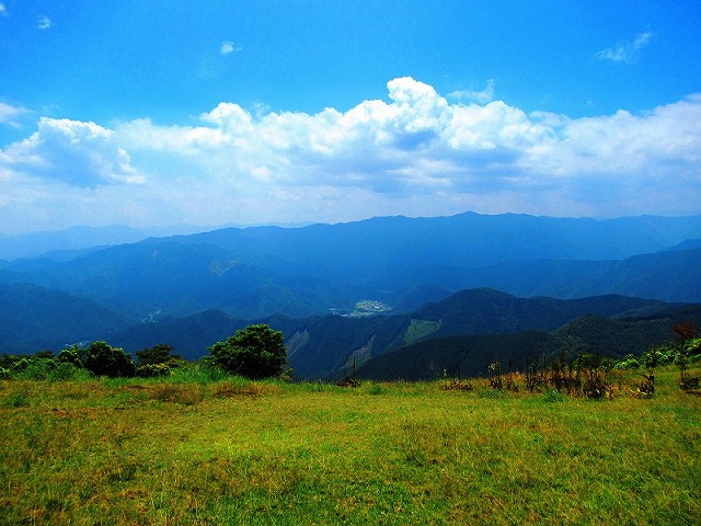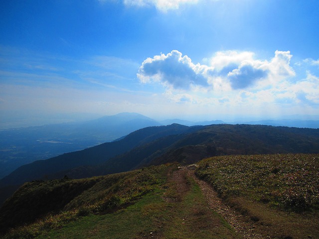 やれやれ ようやく近江展望台に到着です。振り返ると歩いて来た尾根道がはるばると続いています。