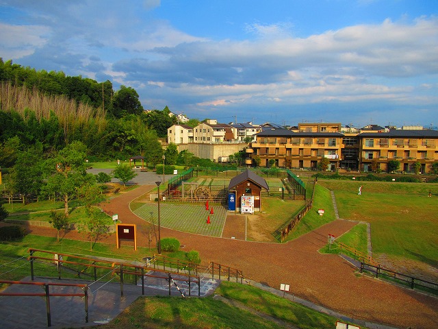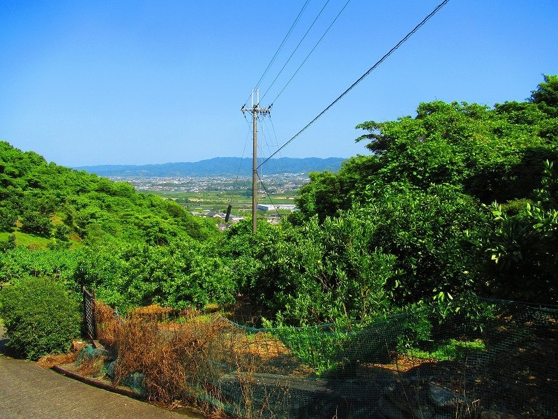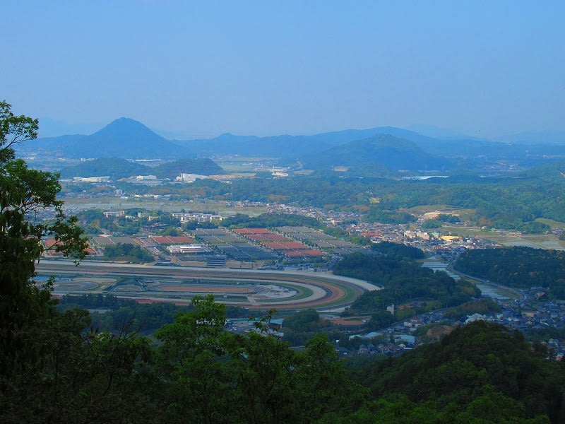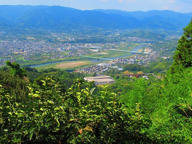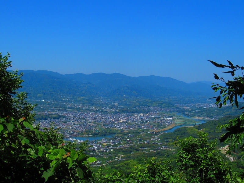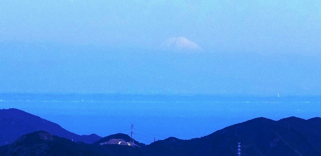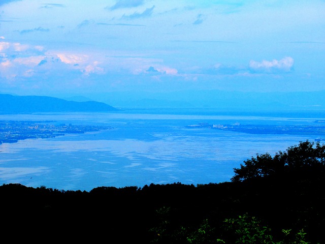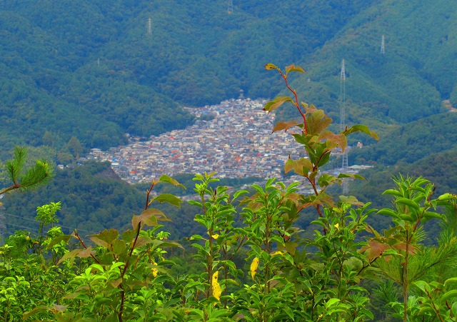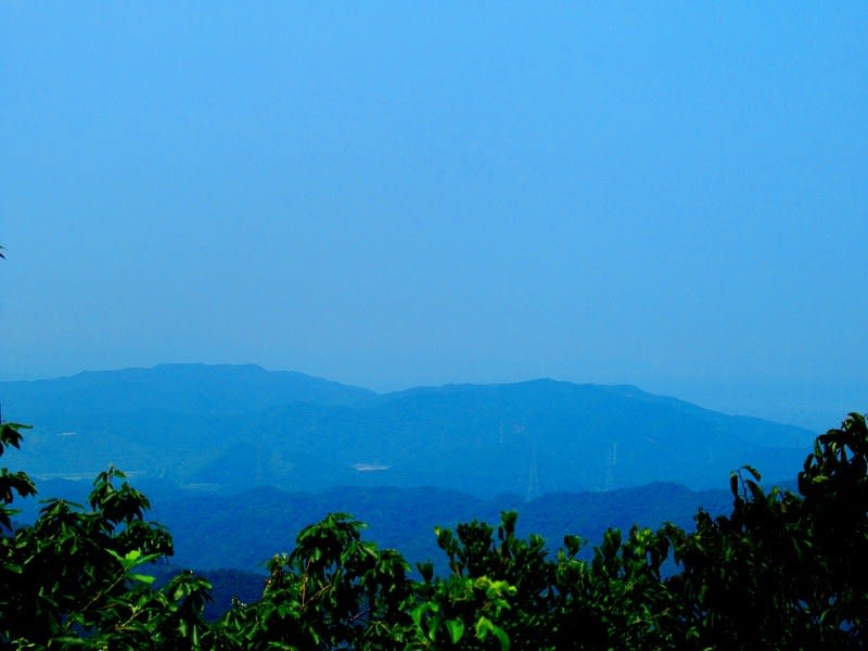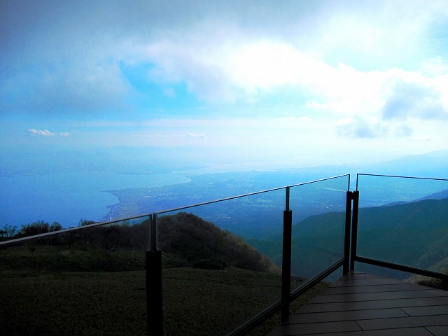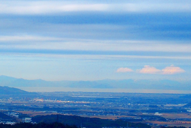 見晴らし台から 下を見下ろすと 町の向こうに山並みが見えて その向こうに何か見えますが