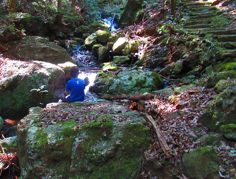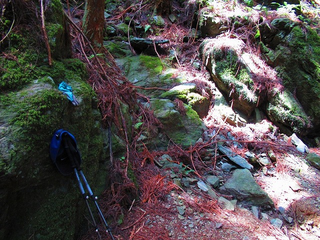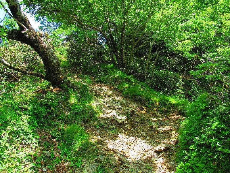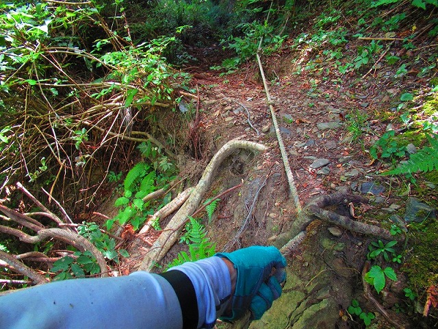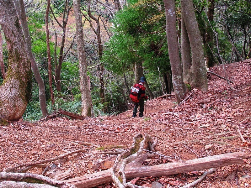 汗拭き峠から急登を続けていたら、突然上から人が降りてこられました。私がスタートして1時間も