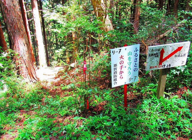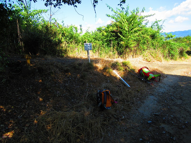 標識が 転がっているので 多分この道で合っているのでしょう。山頂まで約2時間と