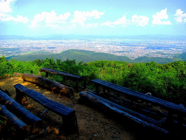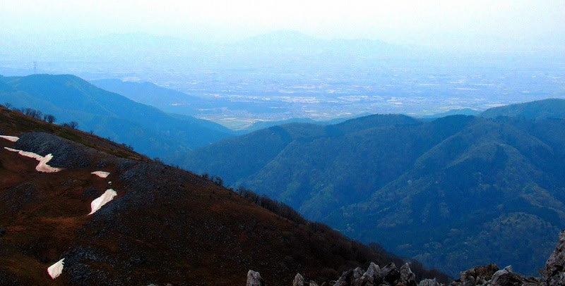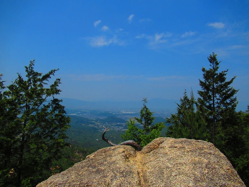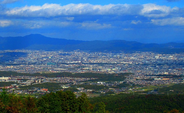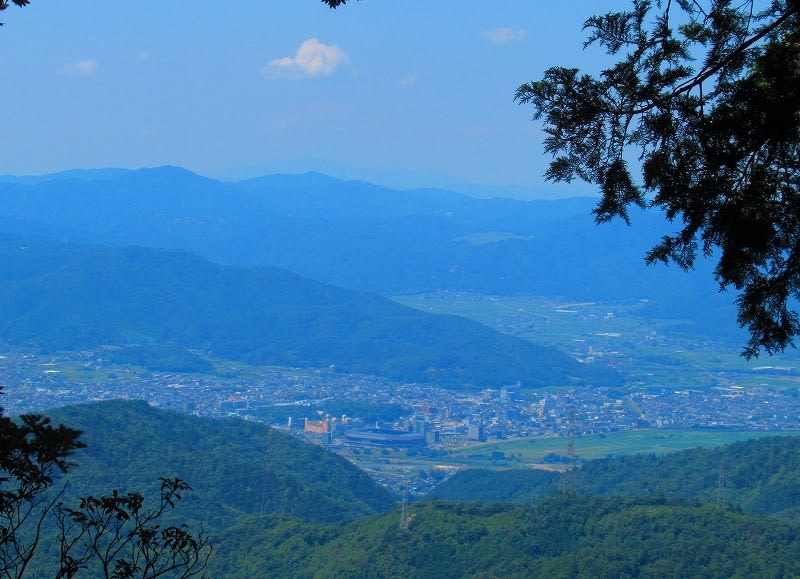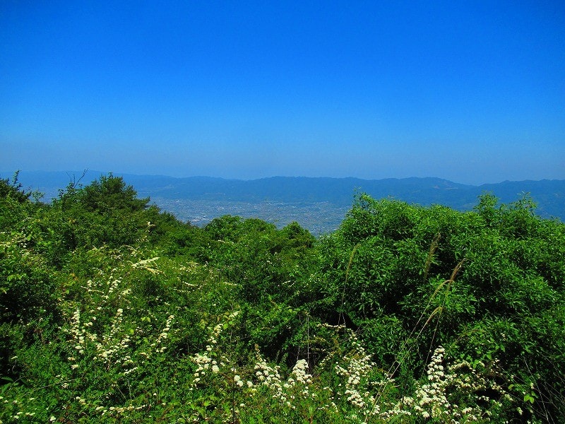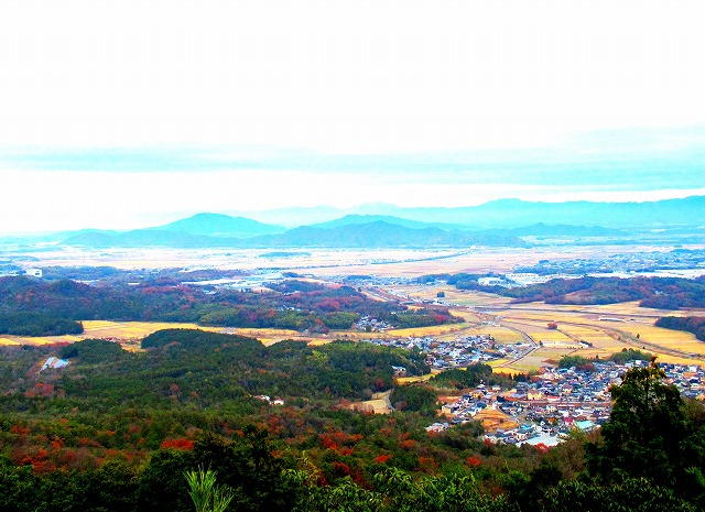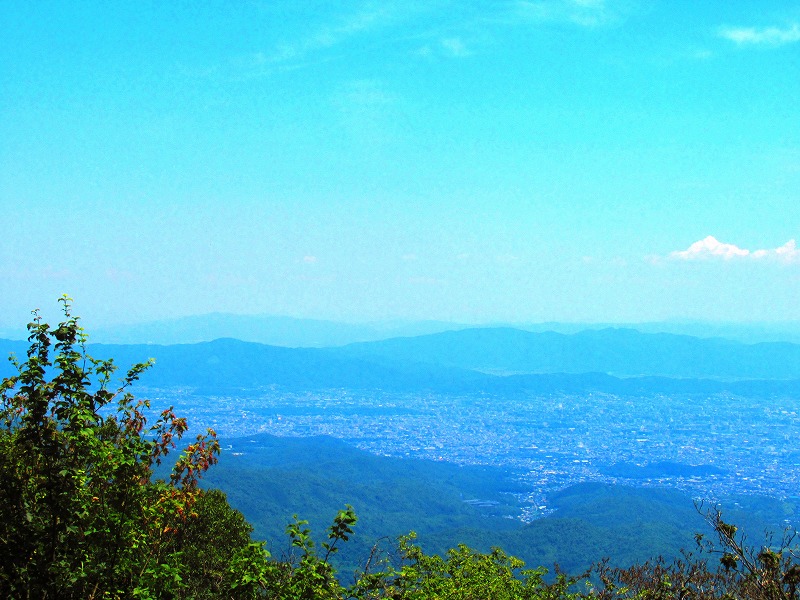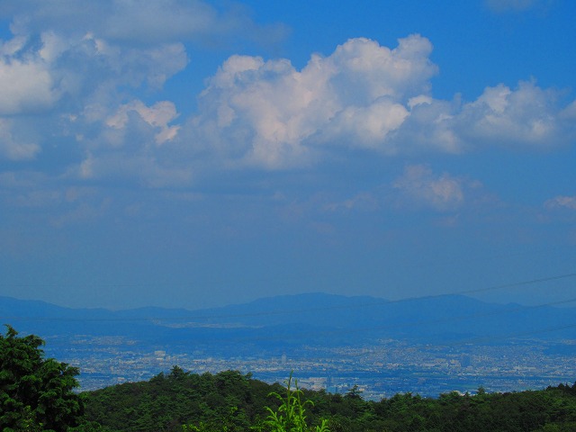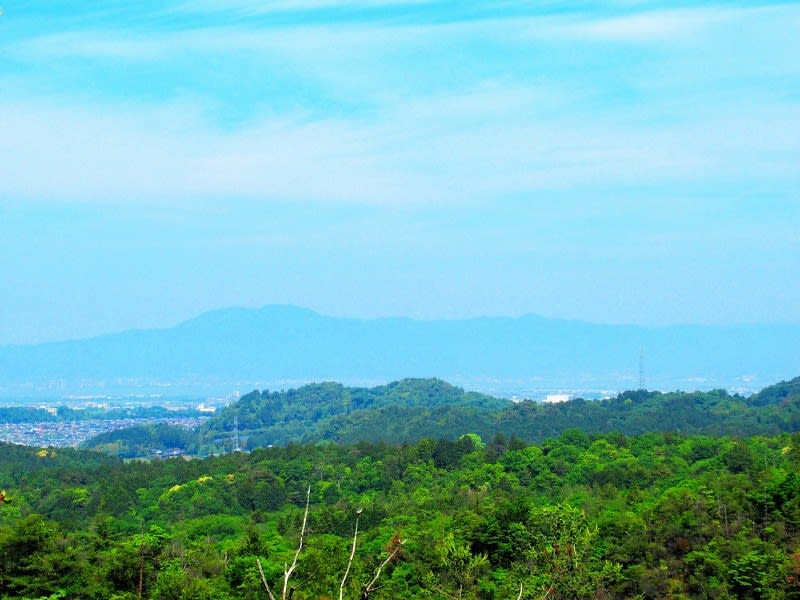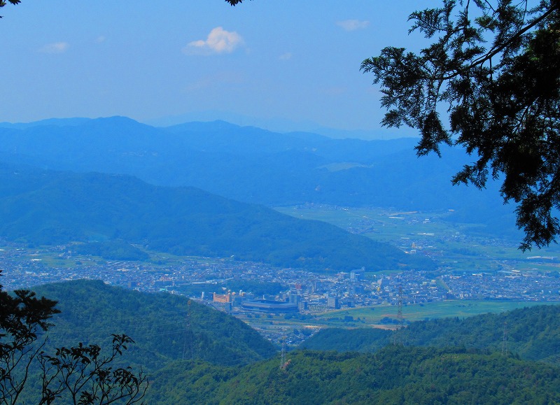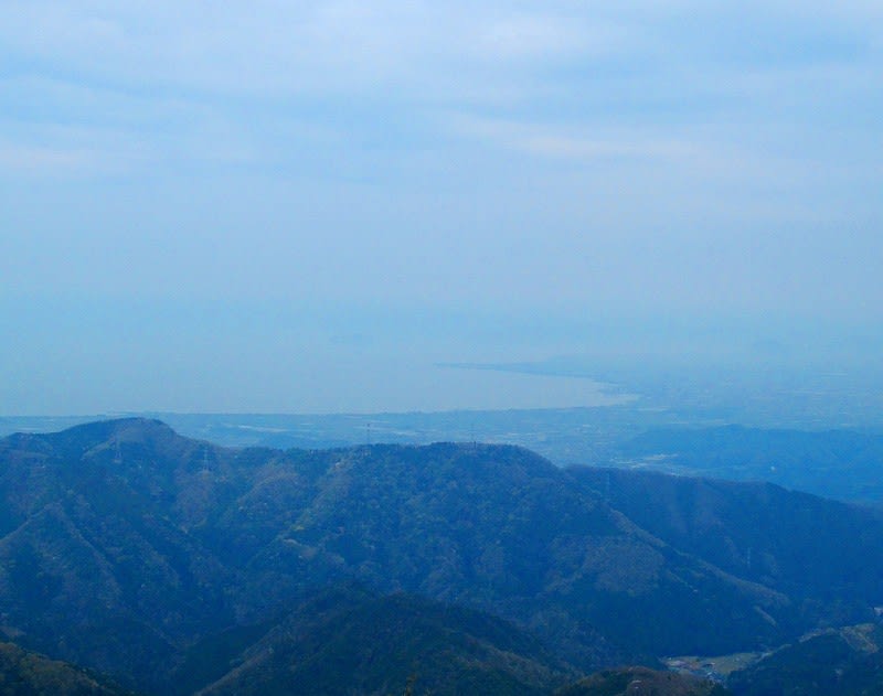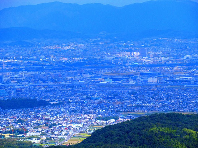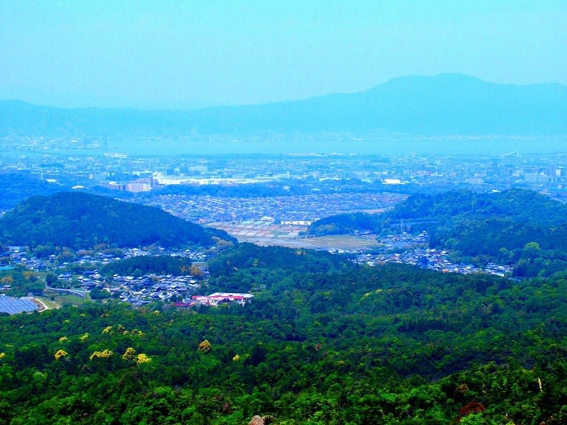 麓の街も見えています。多分左の方に琵琶湖も見えているはずです。かなり霞んできました。