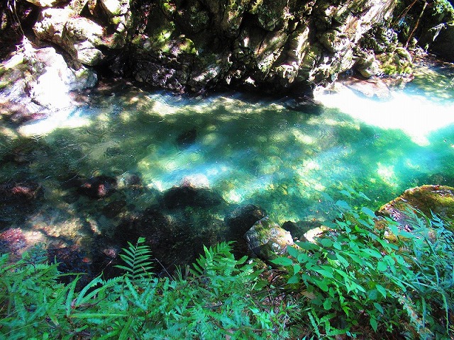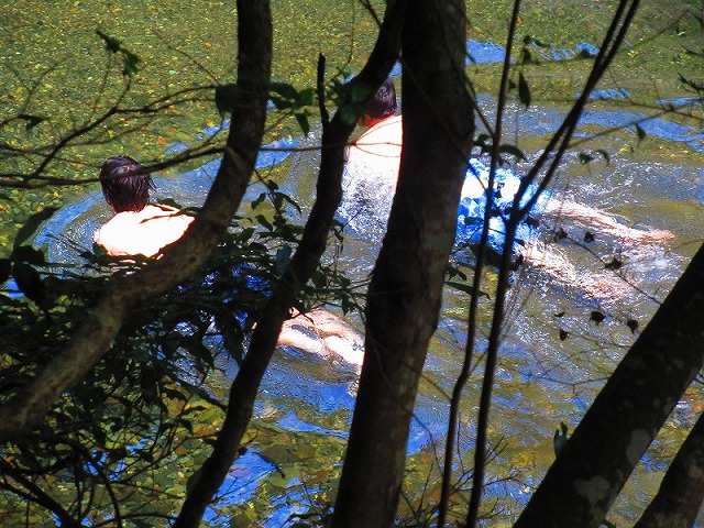 ゆっくりと慎重に進みます。みんなが歩くところは石の色が変わっているのですぐ分かります。