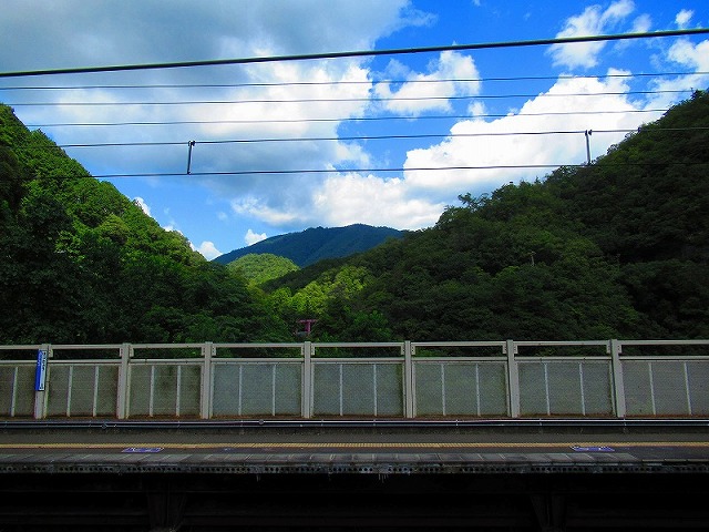 前方に大きな山が見えてきました。御在所岳だと思います。