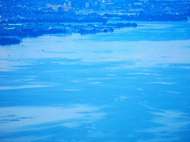 望遠にしてみると どうも琵琶湖が見えているようですが、はっきりとは分かりません。