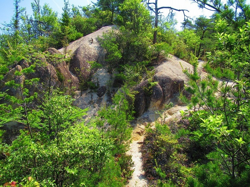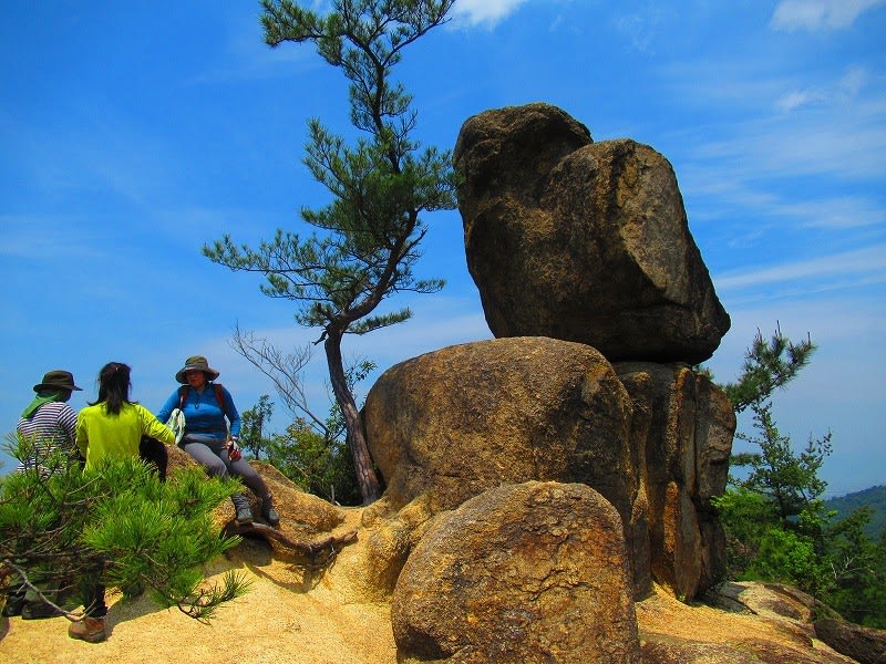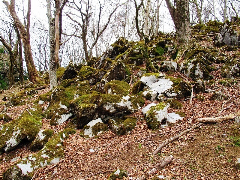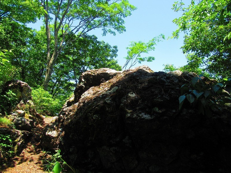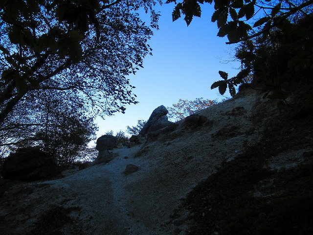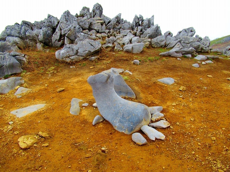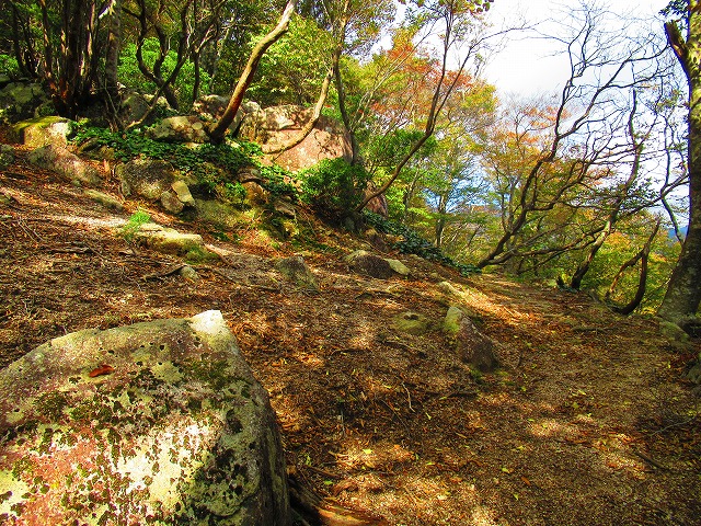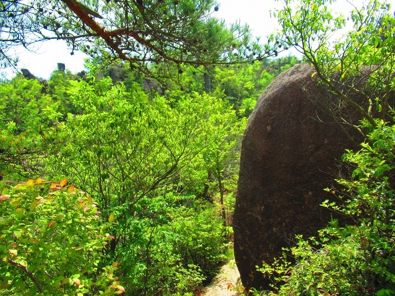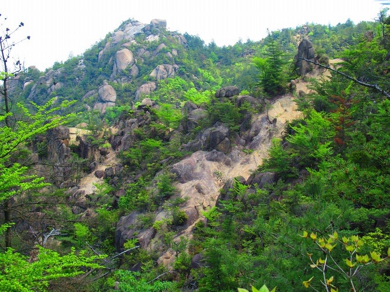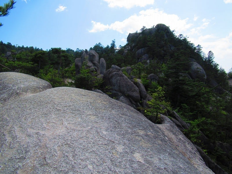 やがて尾根道は 岩山へ入りました。変わった形の岩が ゴロゴロしています。