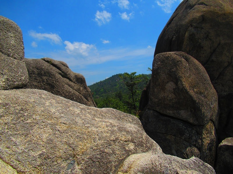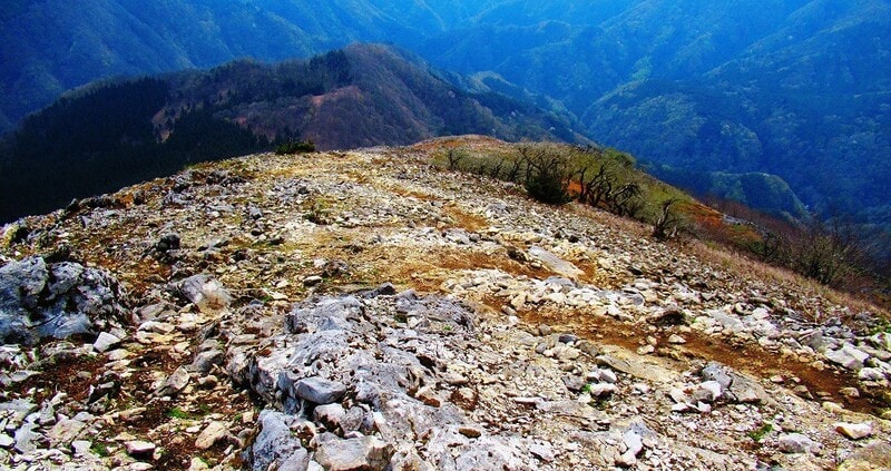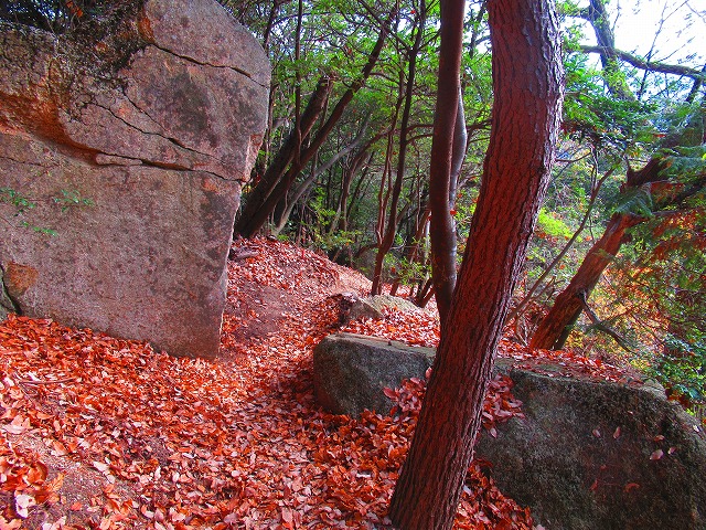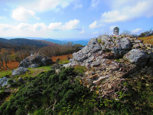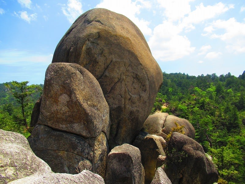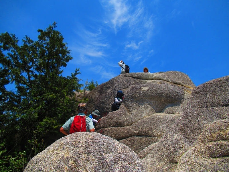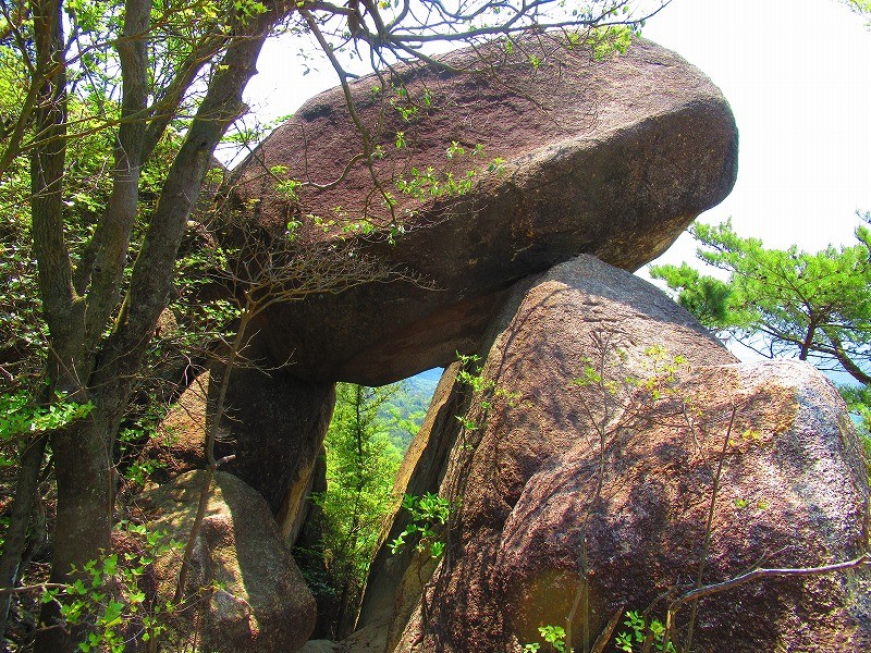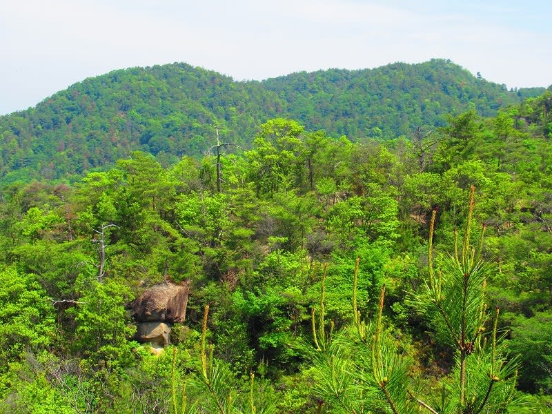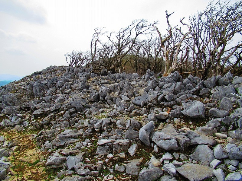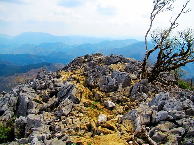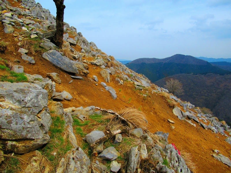 やがて尾根道は 岩山へ入りました。変わった形の岩が ゴロゴロしています。