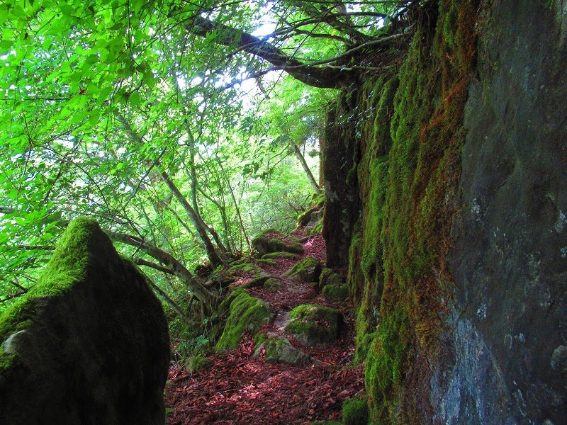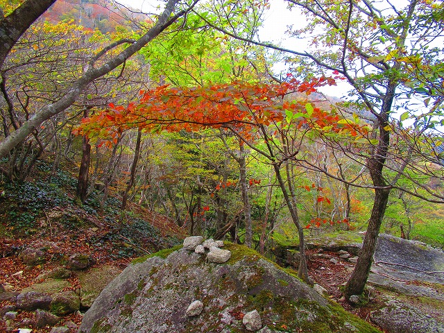 踏み跡は岩稜帯の中も ジグザグに続いていました。