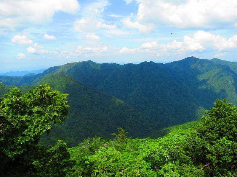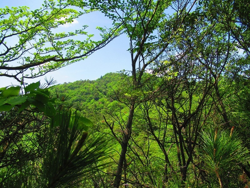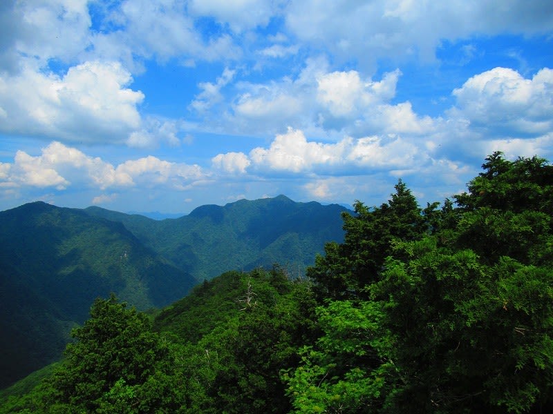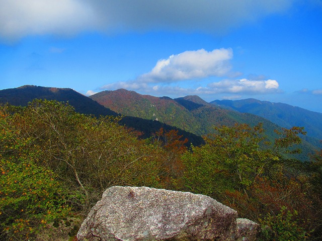暫く登ると目の前にも高い山が見えてきました。早く上へ上がって きょろきょろと周りを