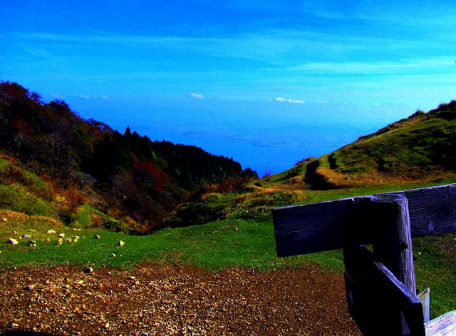 暫く歩くと 見晴らしの良い道に出ました。遠くを見ると 先ほど「五合目見晴らし台」で見た景色は