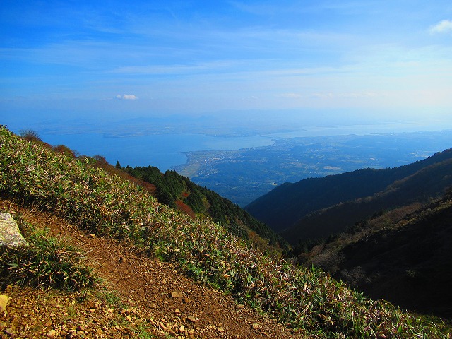 時々 右手に琵琶湖が見えているような気がします。次第にカスミがひどくなりはっきりとは見えません。