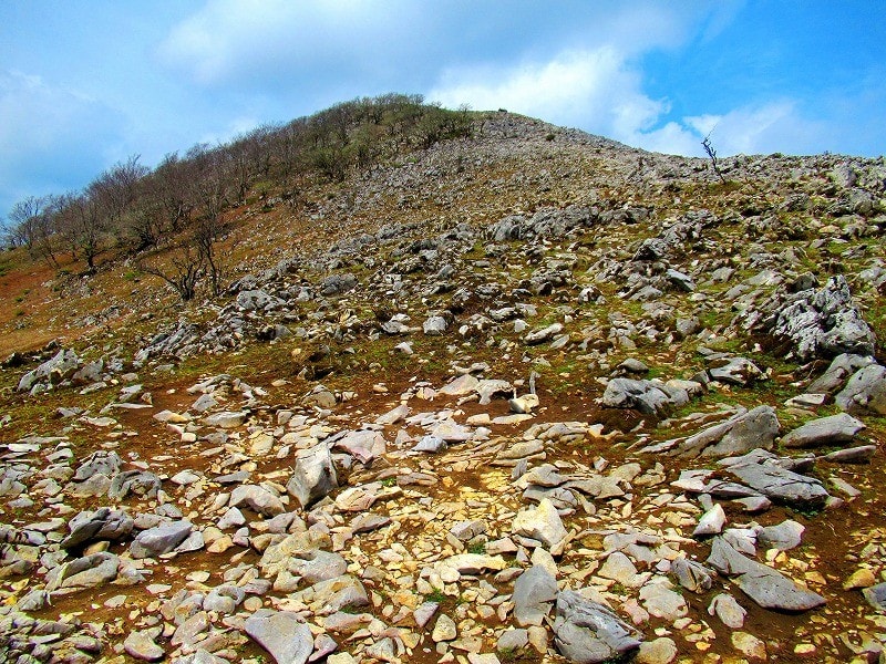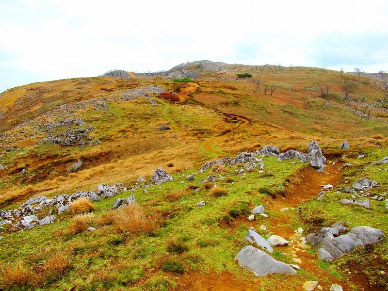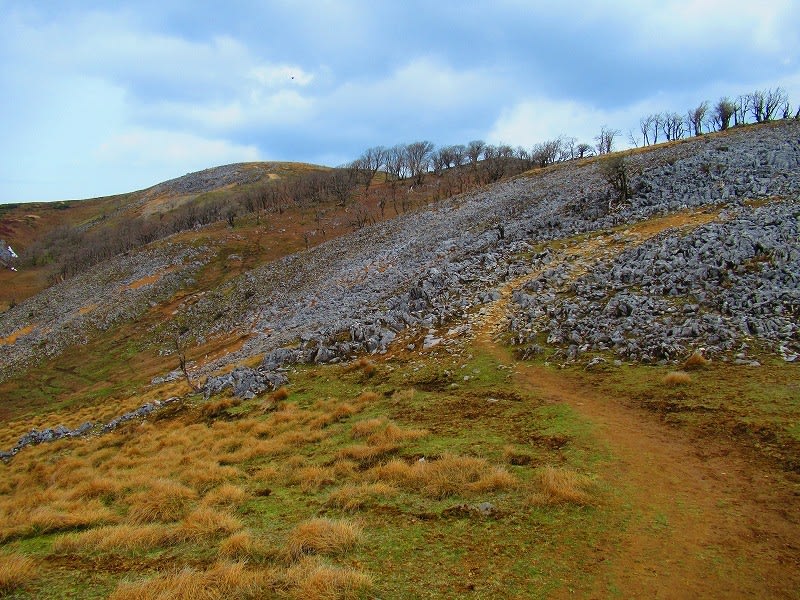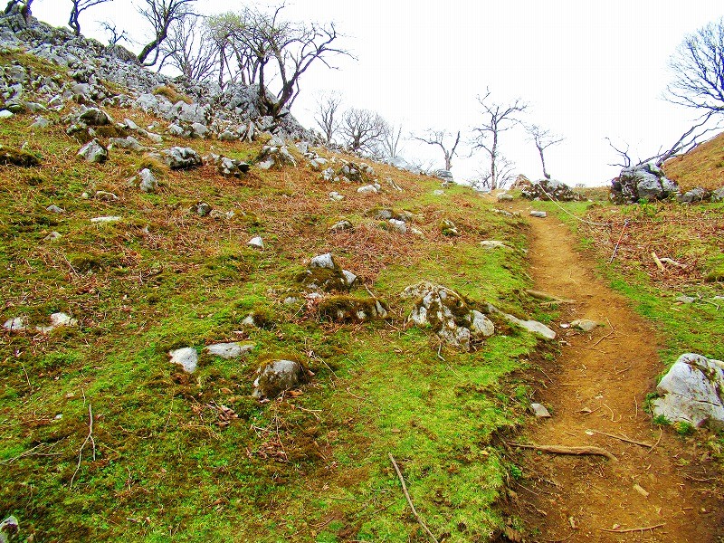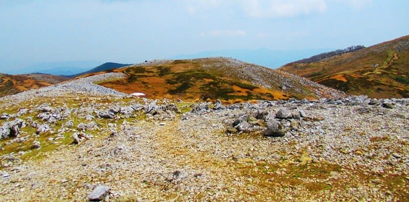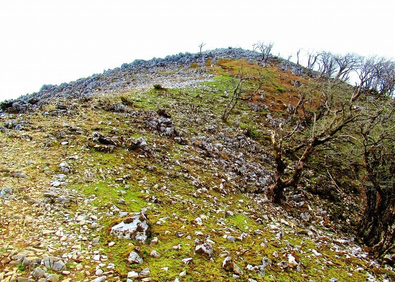 荒涼とした尾根を進みます。踏み跡はそんなに明瞭ではないのですが 尾根から外れなければ