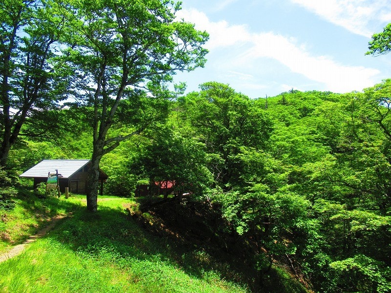 中央が経塚山で 今度はその左に避難小屋が見えています。