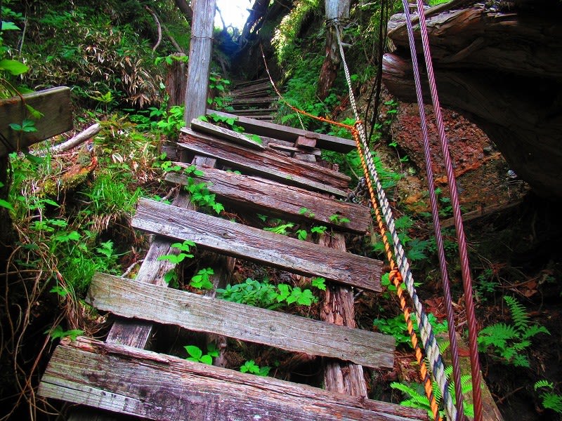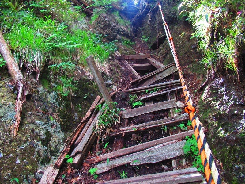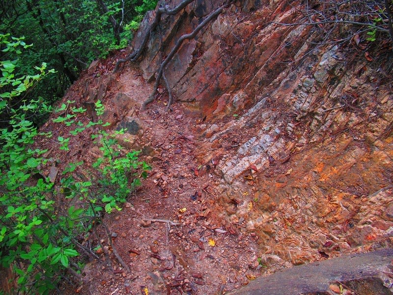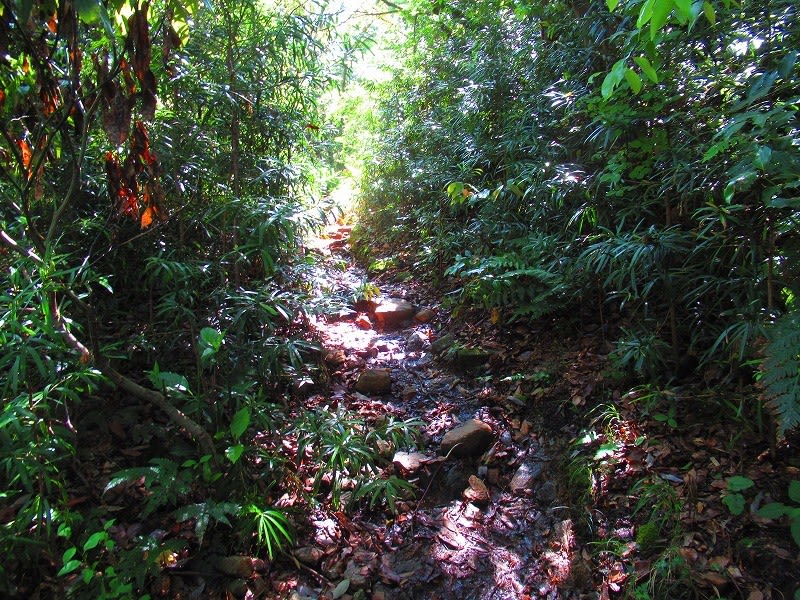 山頂はもう見えなくなったと思います。こんな足場の悪い道をよくも歩いて来たと思います。