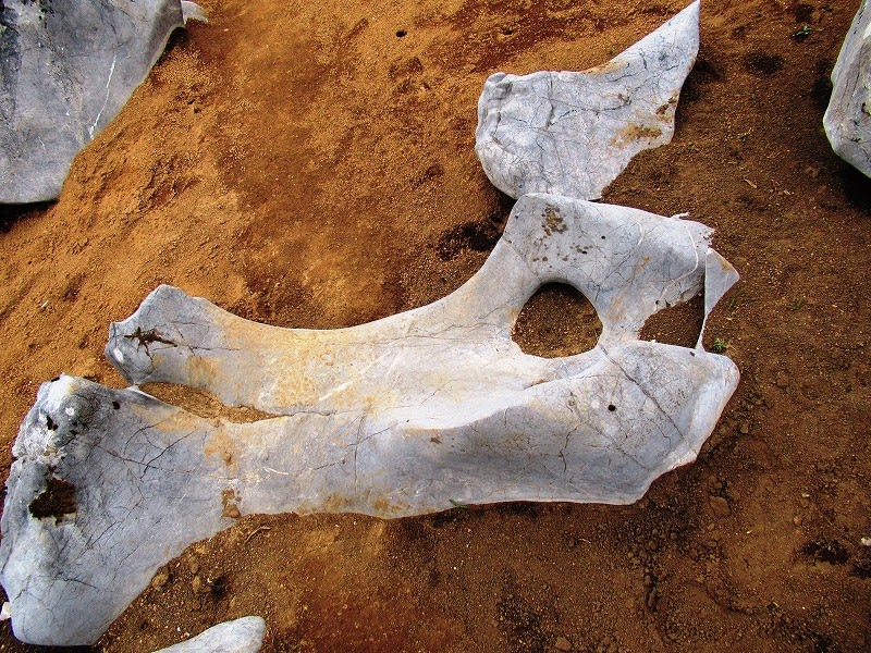 山頂台地のいたるところに こんな形の岩が散乱しています。水で削られた跡のようです。