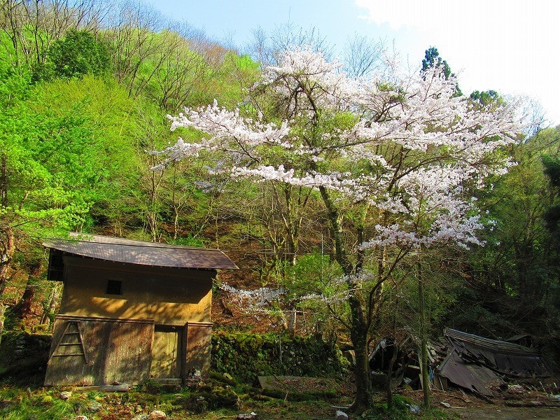 廃集落まで降りて来ました。山桜が満開です。思わず見とれてしまいました。