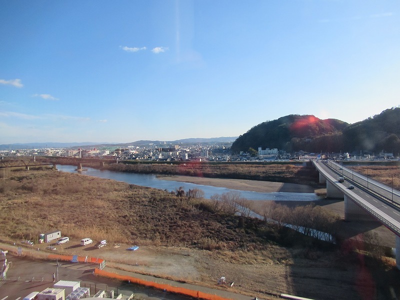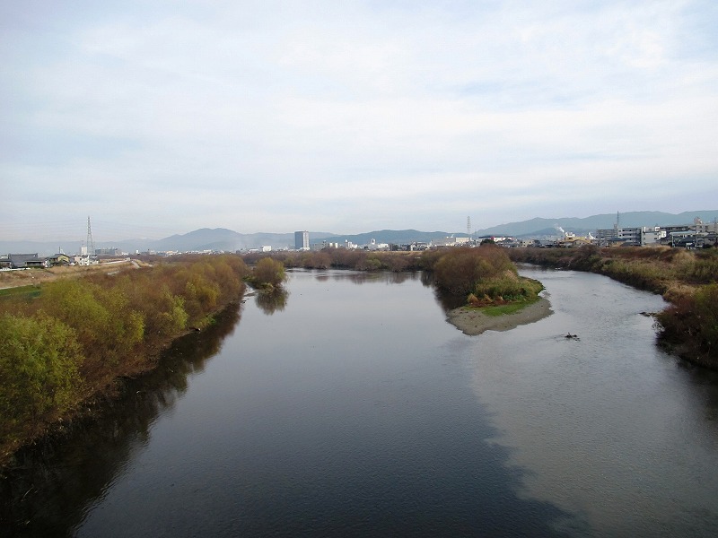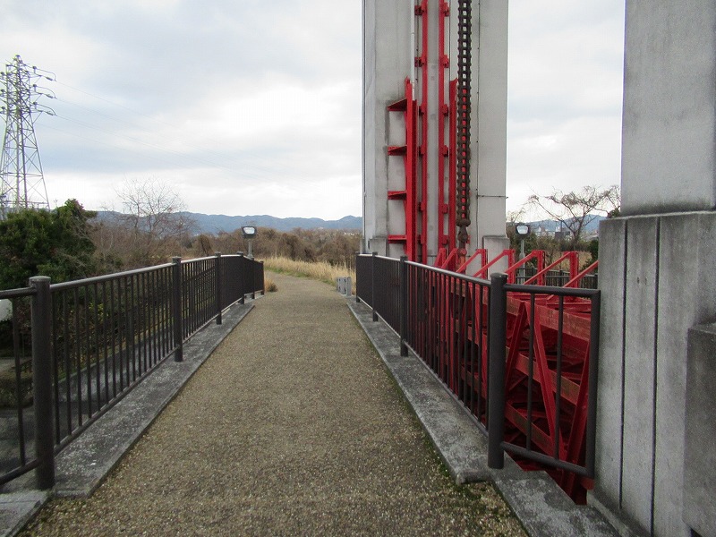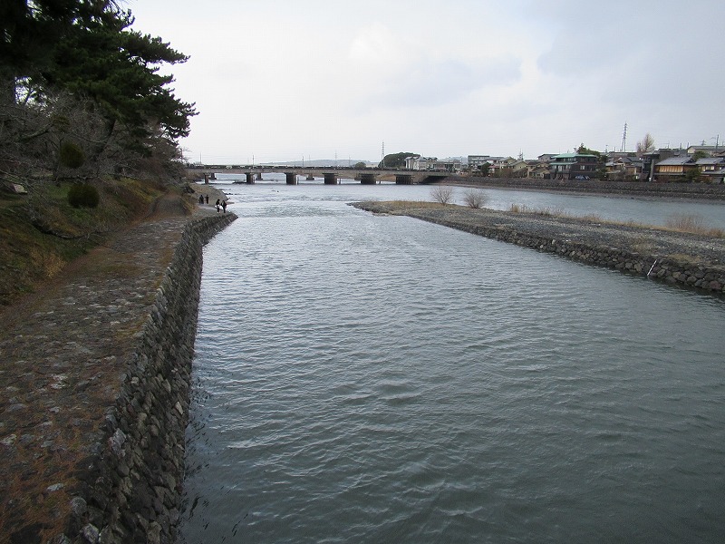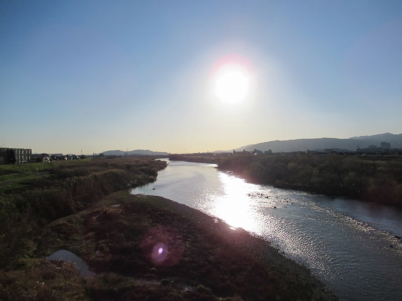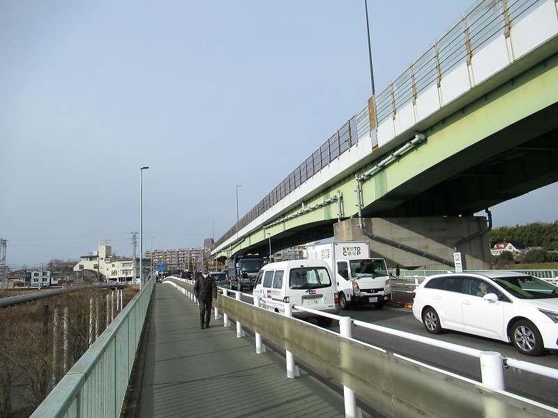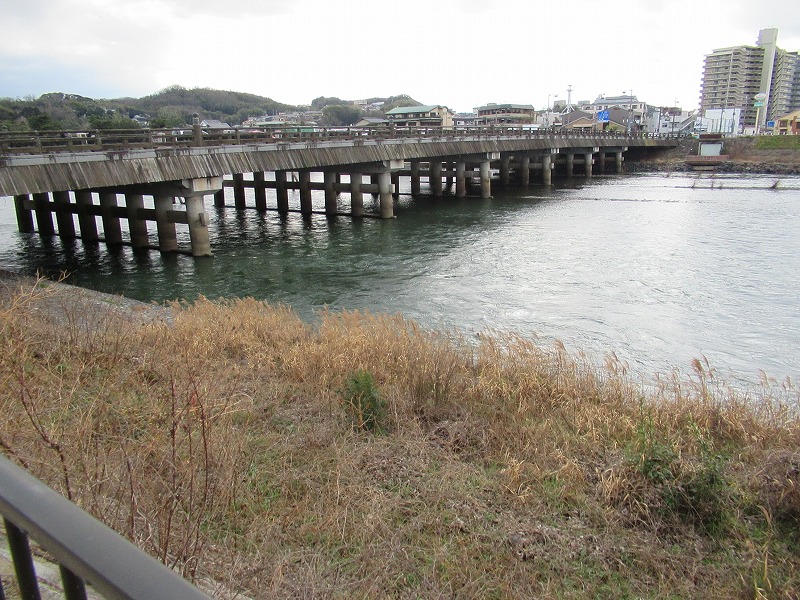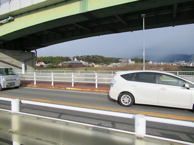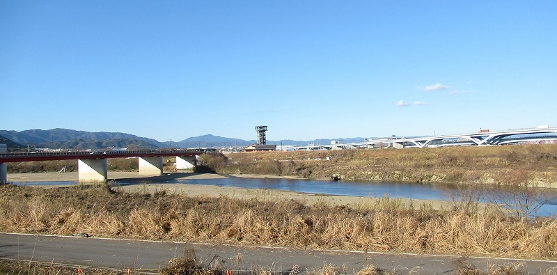 続いて 一文橋を渡ります。正面に見える 西山の上に 今回の目的道路「東海自然歩道」があります。