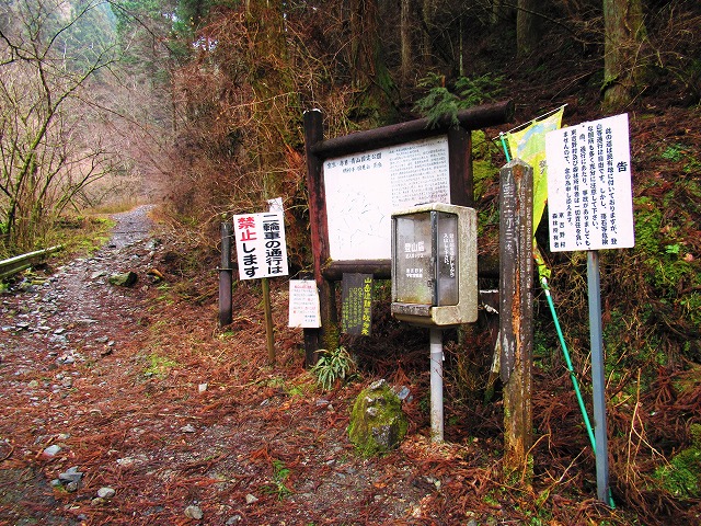冬枯れの 長い林道歩きが始ります。登山口まで 約40分くらいかかります。