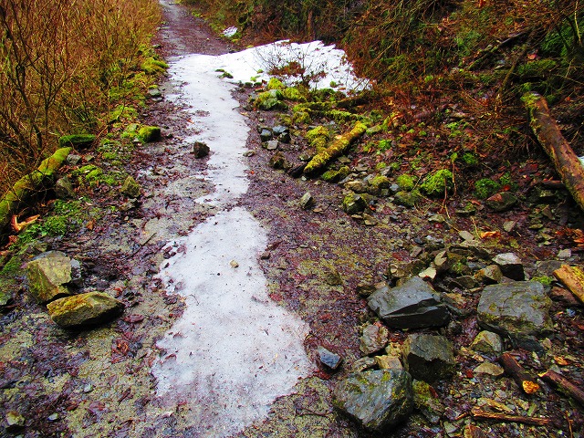 登る道沿いに 氷が続いています。