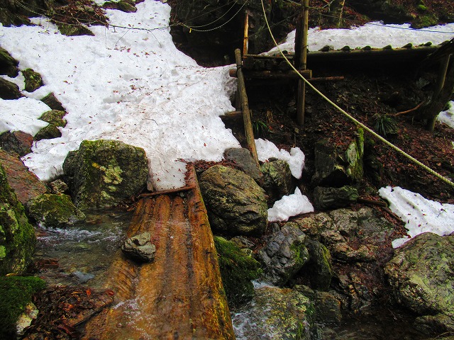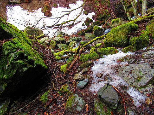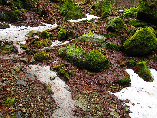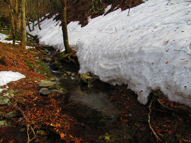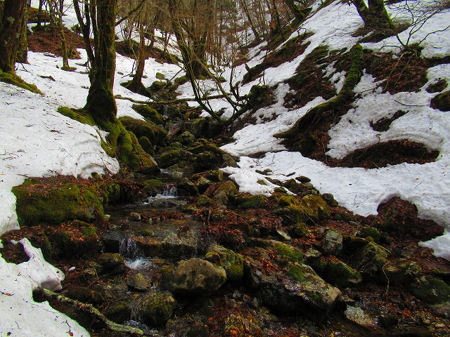 源流を渡りましたが 雪解け水で水量が多く靴をかなり濡らしてしまいました。