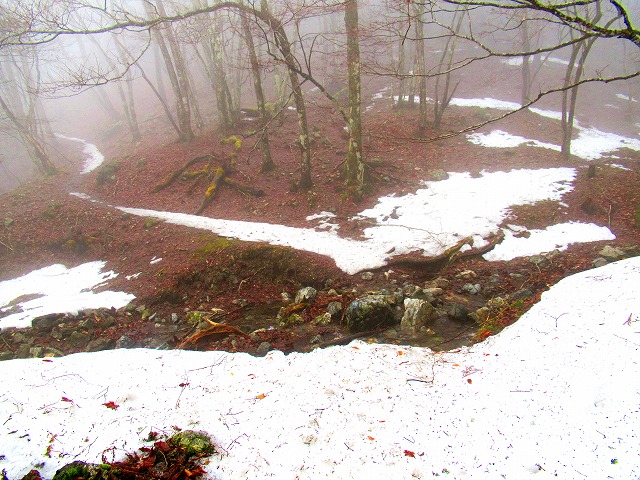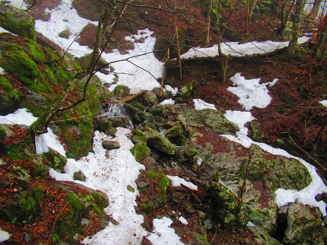 二度目の源流を超えますが、水は雪というより足元の氷の下を流れていて靴は濡れませんでした。