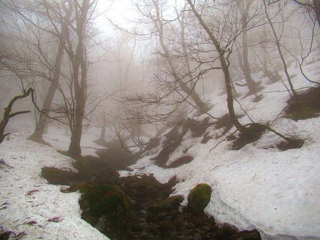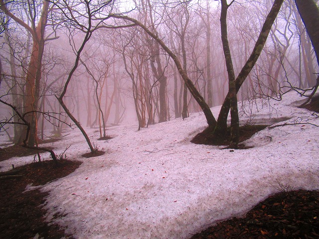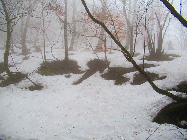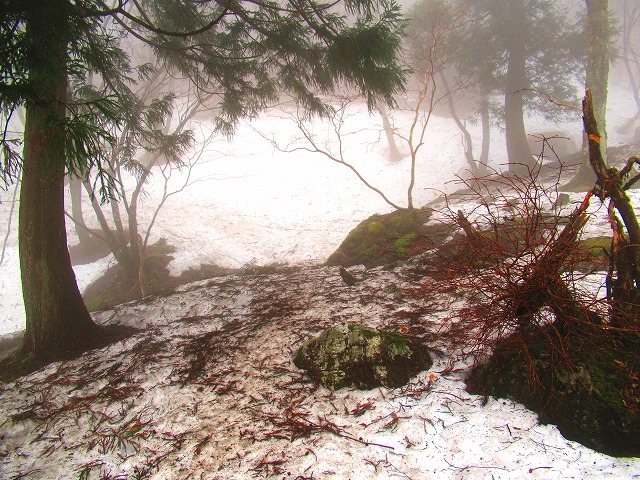 何も見えなくて 明神平から明神岳へ向かう道で 方向が分からなくなり、ぐるぐると森の中を彷徨い