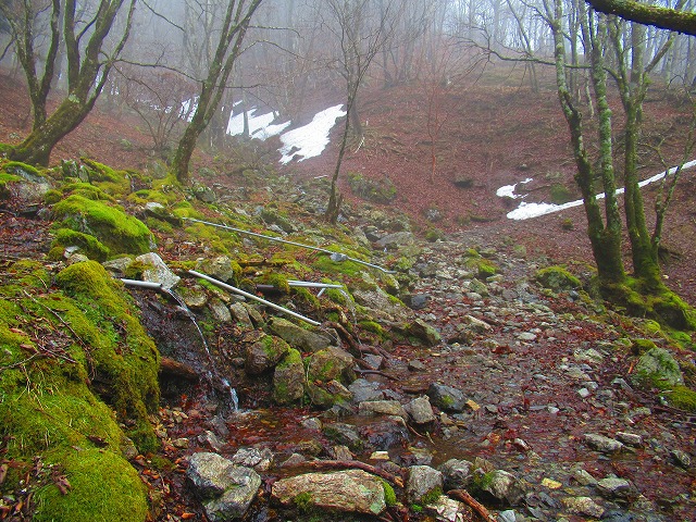 水場に到着です。ここは明神平直下で 雪や氷は厳冬期でもありません。