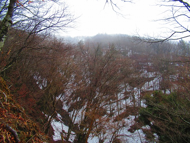 南側は雪雲がいつまでたっても取れません。晴れていれば 台高山脈縦走路の峰々や遠くに
