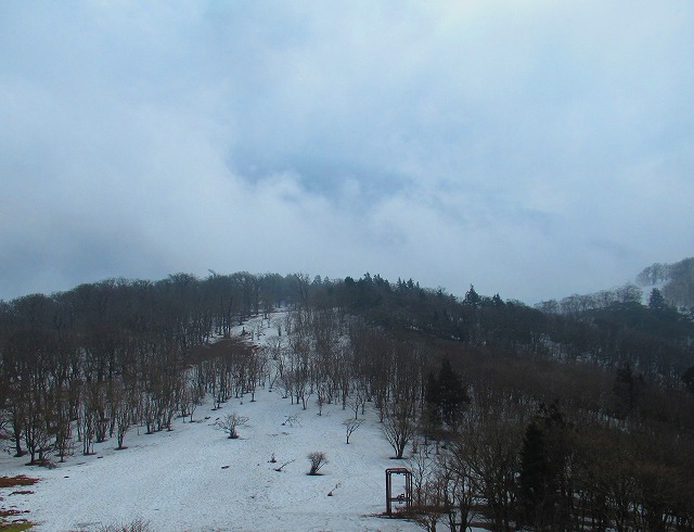 山頂の吹雪と霧氷の世界が嘘のようでした。ここが 標高500m、山頂が標高1200mなので