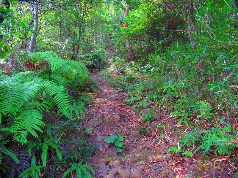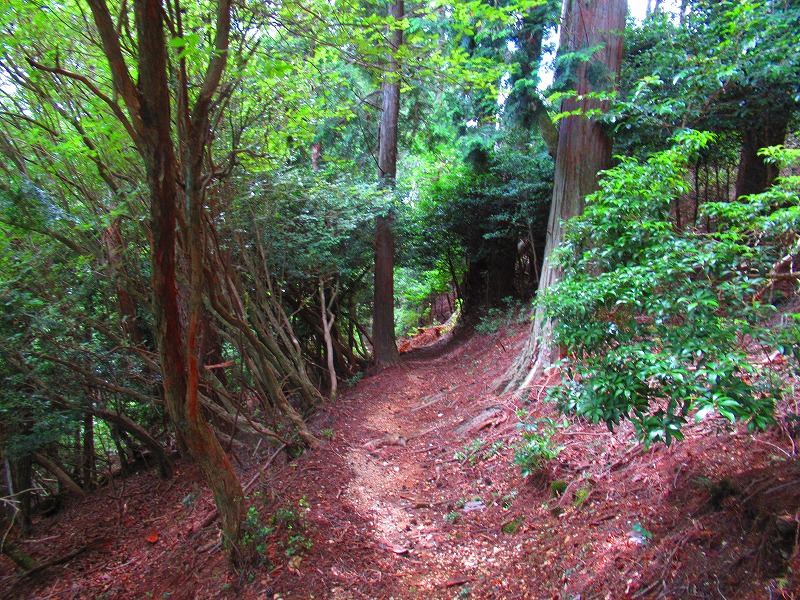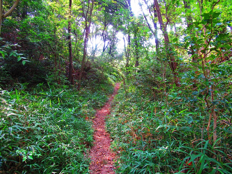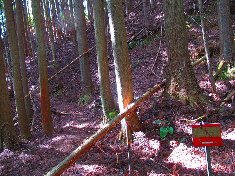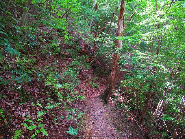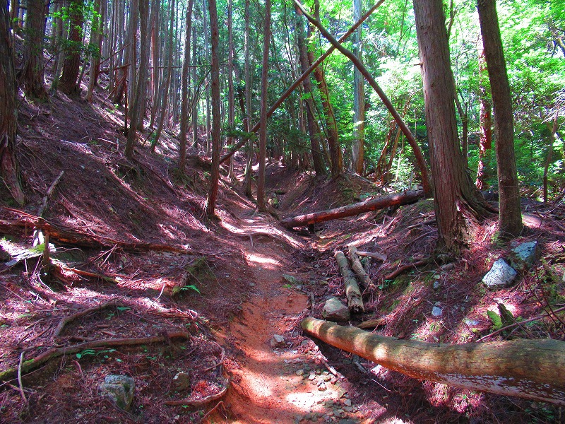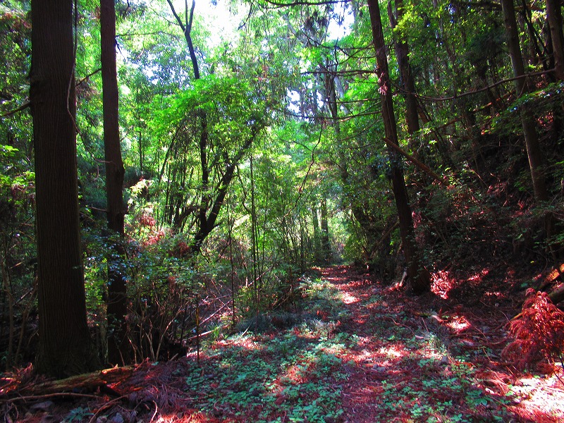 森に入りました。やれやれ一安心です。これで危険な道は無くなり、あとは普通の山道を降りるだけです。